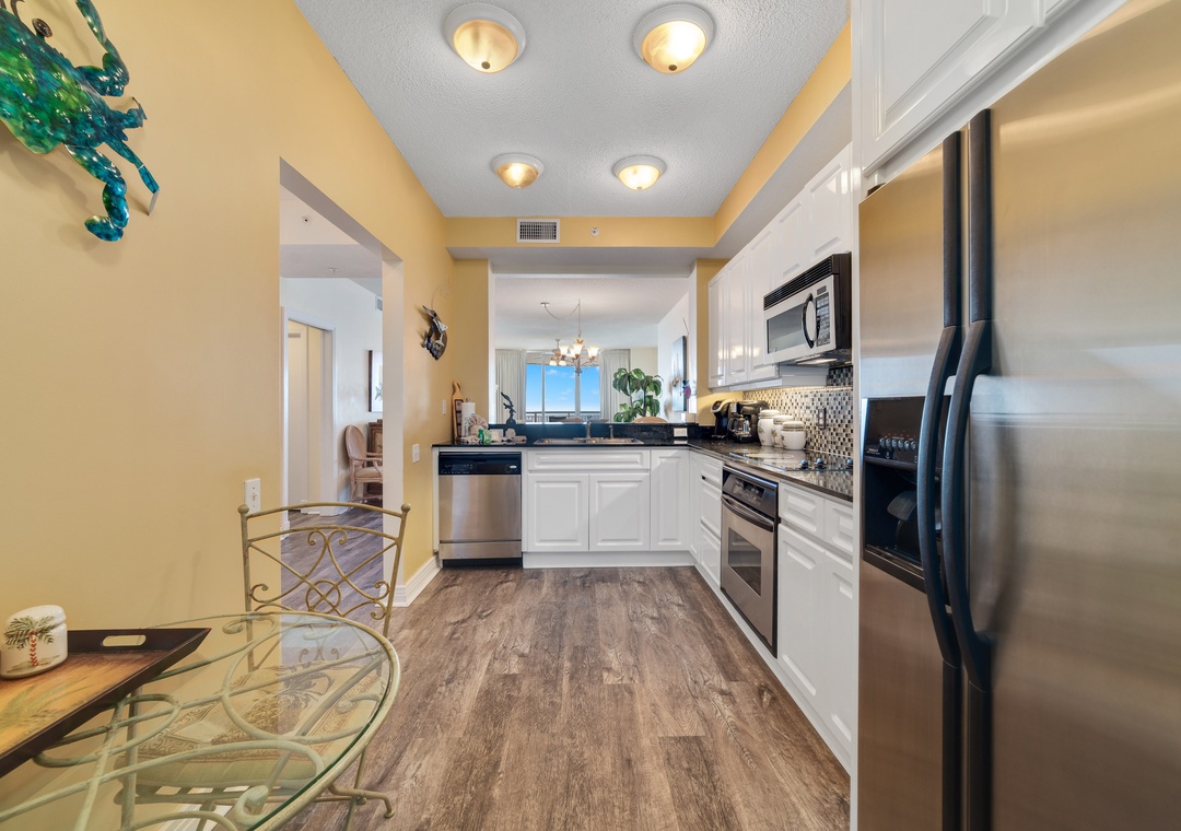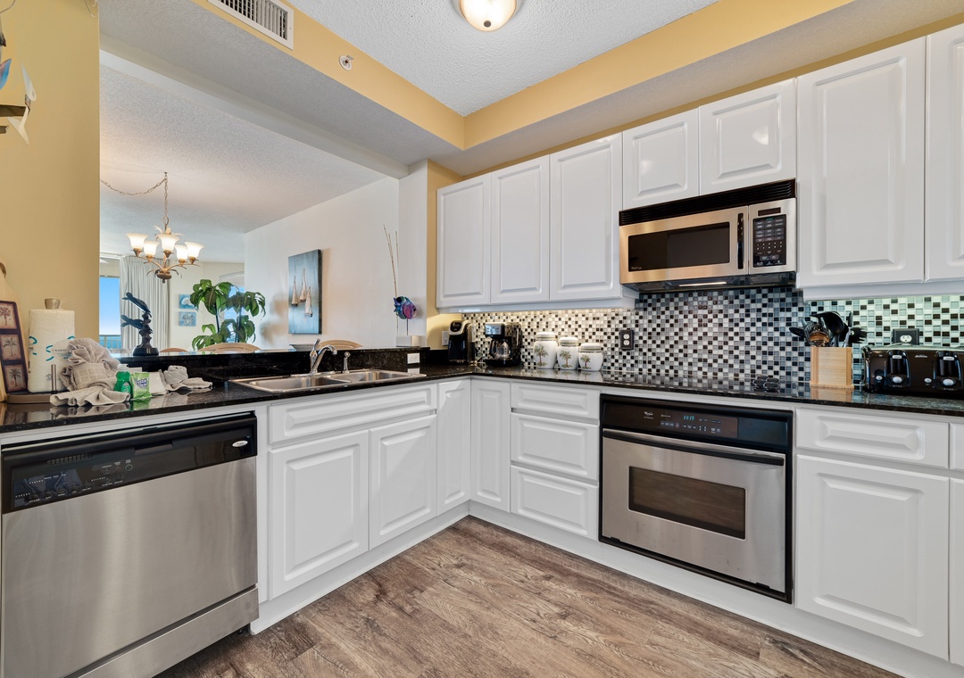 Prepare a culinary masterpiece in the updated gourmet kitchen, boasting new stainless-steel appliances including a side-by-side fridge with in-door ice and filtered water dispenser, granite counter tops, beautiful custom tiled backsplash, and all the small appliances, utensils, dishware and cookware needed to whip up a scrumptious meal and impress your family and friends! Book your dream vacation today!