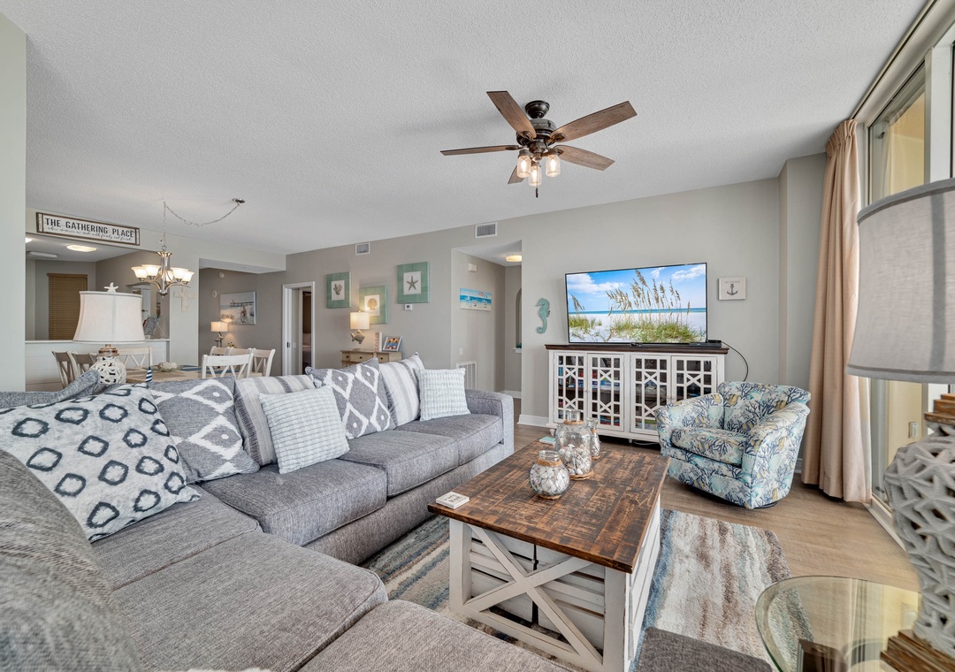 Peaceful, relaxing. Luxury Coastal Vacations gives excellent customer service. The DVD player was set up in the bedroom when we arrived. A technician came and moved it to the living room for us. He took time to show us how to use the system. The condo had everything we needed for a perfect vacation.- Reviewed On: 4/13/2021