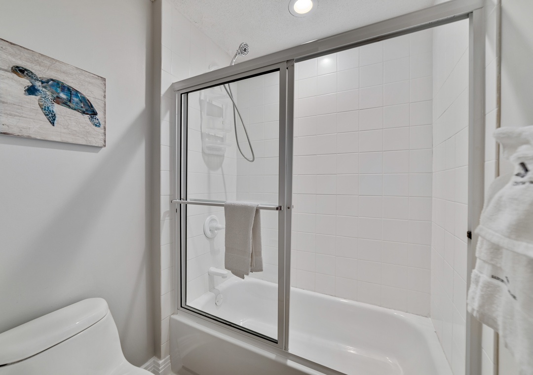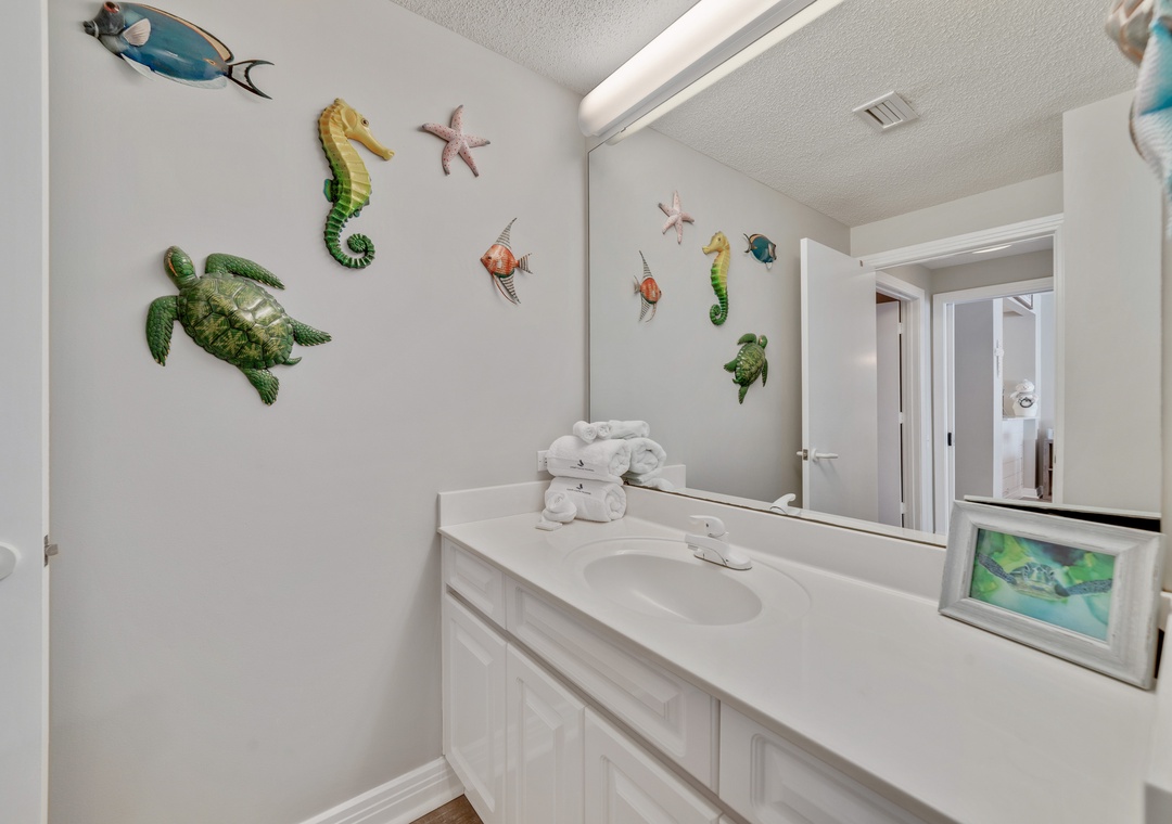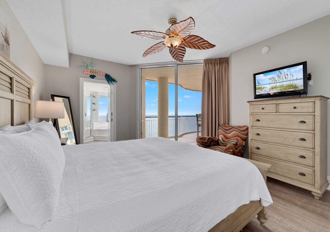 The master suite is elegantly appointed, hosting a king-size premium bed with deluxe linens and beachfront balcony access! The attached master bath is equally impressive, featuring a jetted garden tub, a separate walk-in shower, his-and-her vanities and gulf views. The second bedroom offers an ultra-comfortable queen and full size beds with attached bath. The living room sofa converts into a queen sleeper, accommodating up to 8 comfortably!