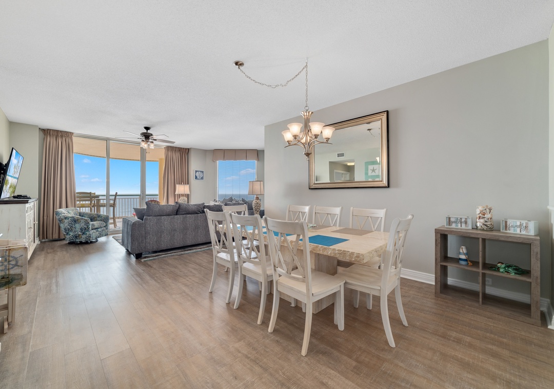 This stunning 15th floor 2 bedroom unit features upgrades such as high-end furnishings, updated electronics, quality linens, and not to mention the most amazing views of the beloved Gulf Coast! The living area boasts chic furnishings and floor to ceiling sliding doors that lead to a spacious gulf front balcony! Cooking is not only easy but enjoyable in the gourmet kitchen. The dining area offers a beautiful table with additional seating at the breakfast bar.