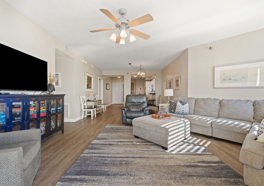 We had a wonderful vacation here. Unit was spacious and clean. View from balcony was fabulous. Easy access to elevator, pool, and beach. Nice big fitness center and pool was good size, clean, and quiet. Beds were comfortable! Easy to operate tvs also. Publix grocery store was 5 minutes away. Pay attention to # of amenities included in case your family needs more for your stay. We brought an extra roll of toilet paper and laundry soap.- Reviewed On: 10/1/2023