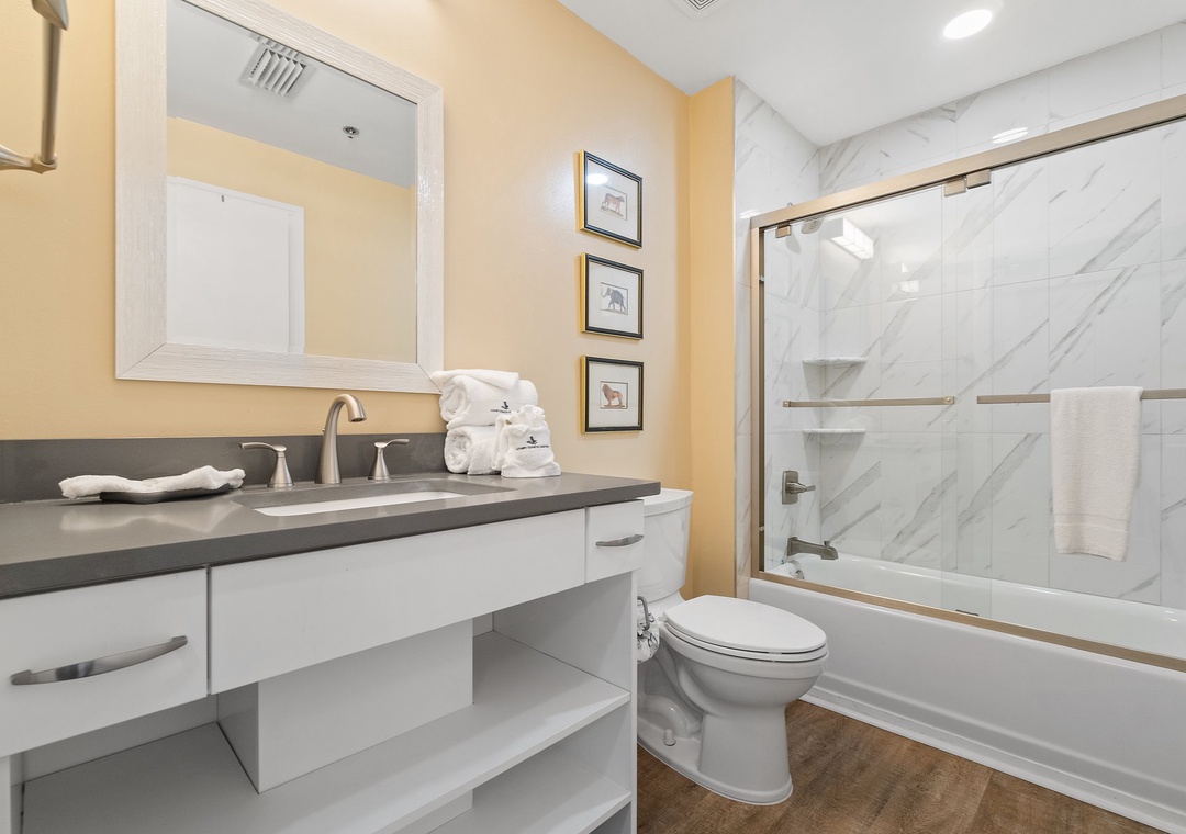 We loved staying here. The kids had separate bedrooms and bathrooms, one was the hall bath, but still. The photos online are very accurate so you are getting what you’re seeing. The furniture and beds were comfortable enough. Cleanest condo I’ve ever seen. I dropped the remote behind the master bed and had to use a dust mop to retrieve it. The only thing that came out was the remote. No dust or cobwebs or dirt. We made a mess in the freezer that required us to remove the drawers to clean. The fridge and freezer were spotless. Nothing but our own mess was there. The beach is close and there are pools. One is indoor. Don’t forget tennis rackets, the courts are turf. So cool.- Reviewed On: 10/18/2022