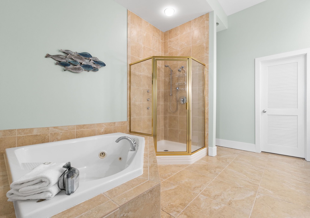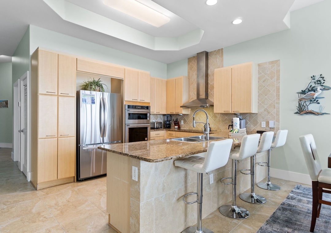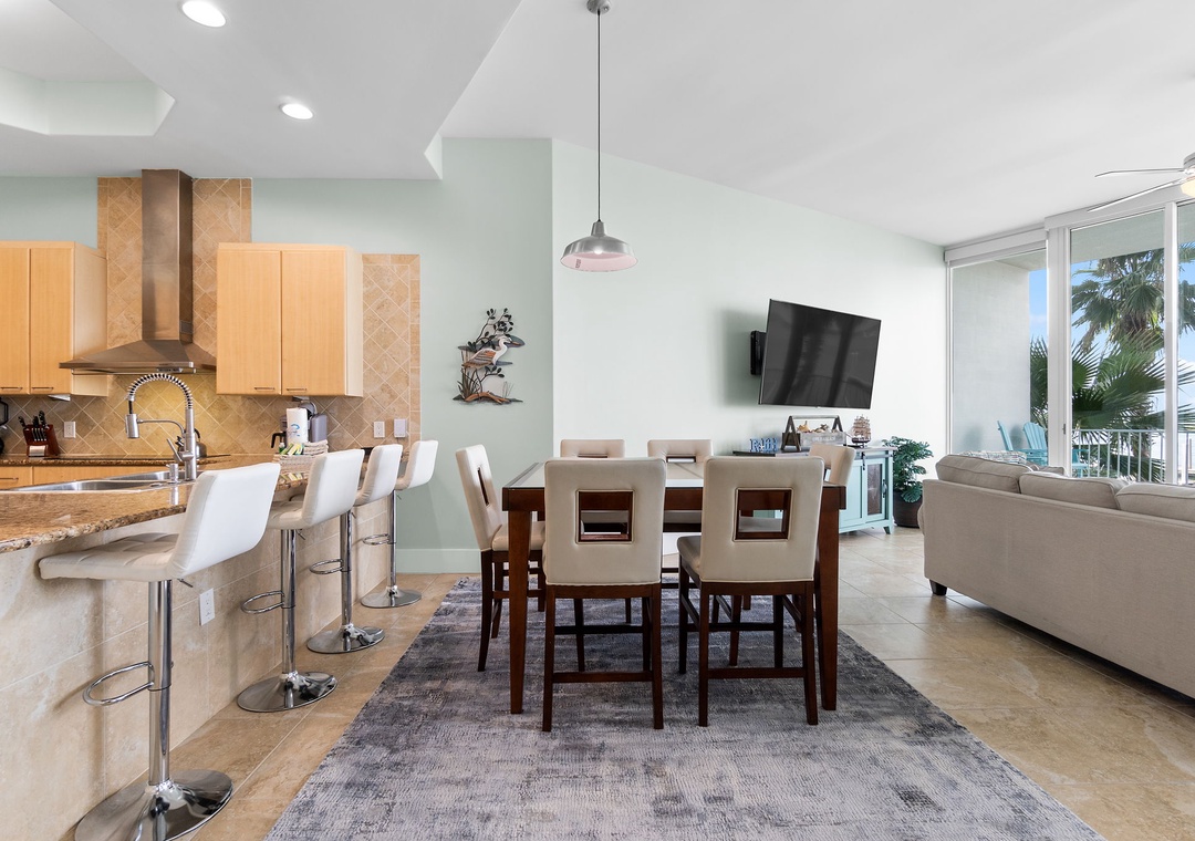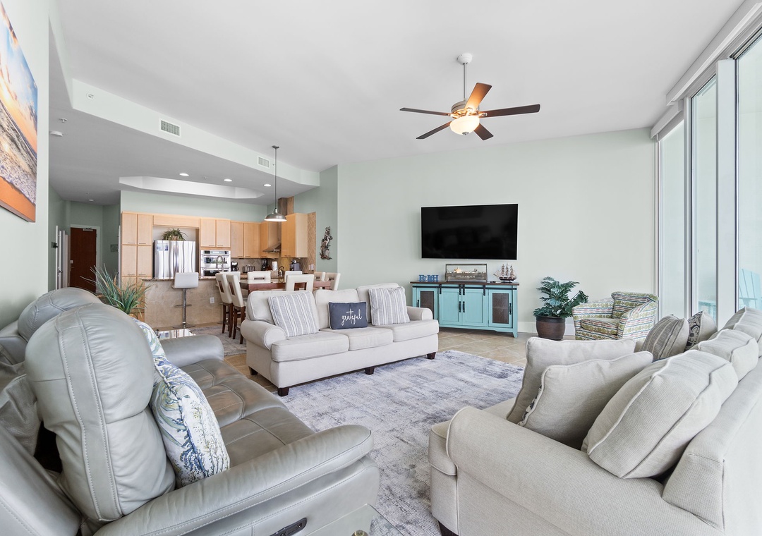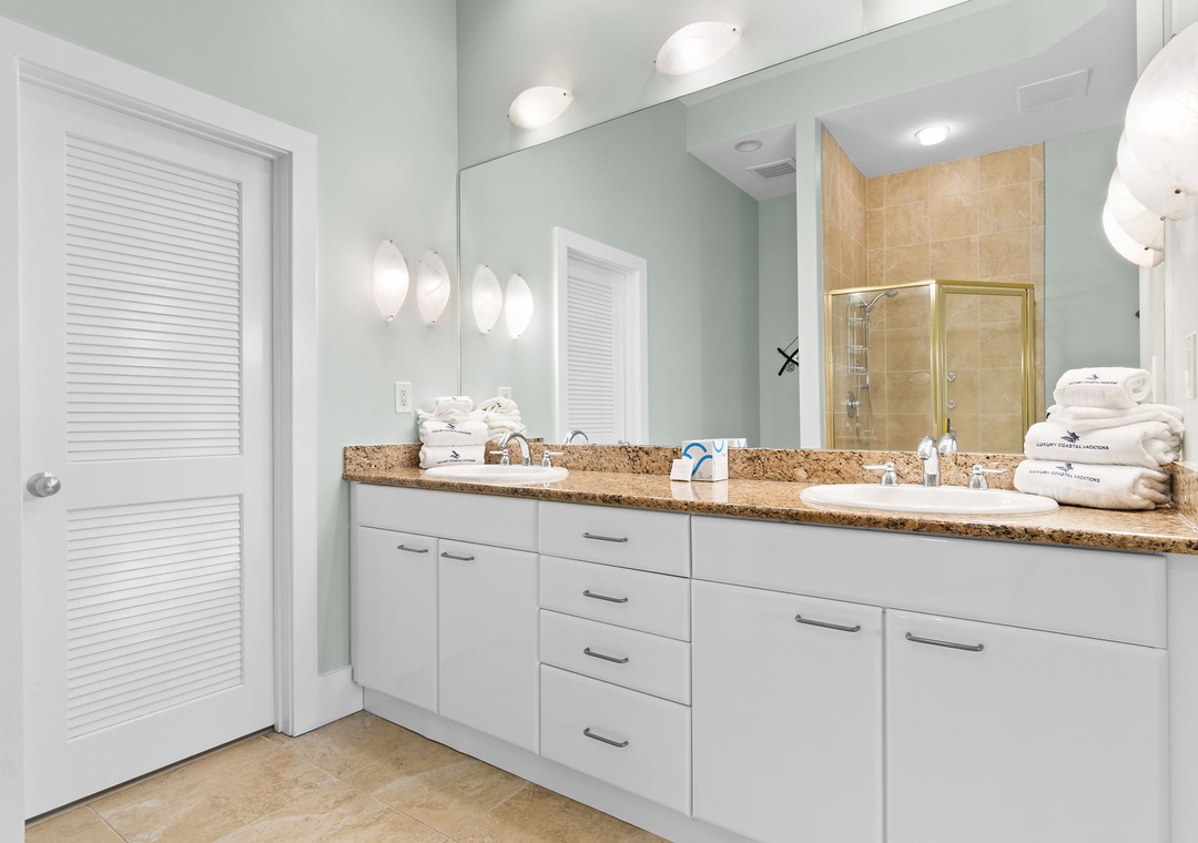 With premium mattresses and luxury appointments in the bedrooms and baths, you'll definitely catch up on some much needed rest and relaxation during your vacation. The master bedroom offers a plush king size bed. The master suite also offers balcony access, and the adjoining glamour bath includes a jetted 2 person tub, separate walk in shower, and twin vanities with vessel sinks. The 2nd bedroom features a premium king bed and a private bath. The 3rd bedroom also offers a king bed and a private bath. This unit now sleeps up to 10!