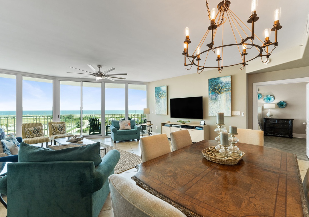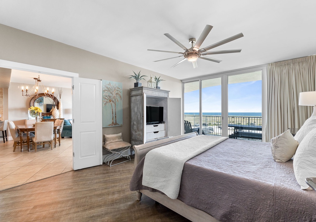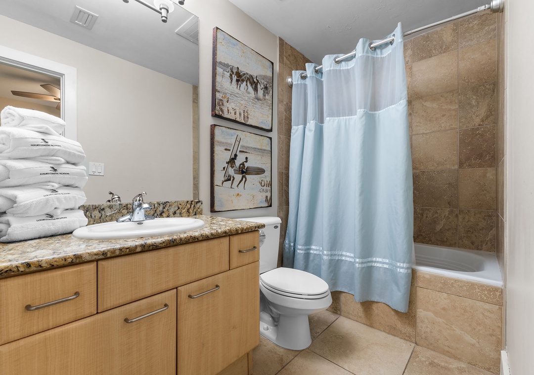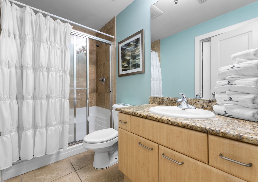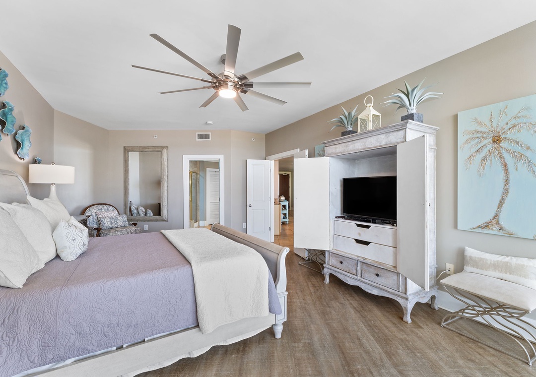 With premium mattresses and luxury appointments in the bedrooms and baths, you'll definitely catch up on some much needed rest and relaxation during your vacation. The master bedroom offers a king size bed with a remote-controlled adjustable base, allowing you to sleep soundly and comfortably on your vacation! The master suite also offers balcony access, and the adjoining glamour bath includes a jetted 2 person tub, separate walk in shower, and twin vanities with vessel sinks. The 2nd bedroom features a premium queen bed and a private bath. The 3rd bedroom offers bunk bed with 1 twin, 1 full bed and 1 full trundle underneath, and private bathroom. With the Queen and Twin sofa sleepers, this unit now sleeps up to 12!
