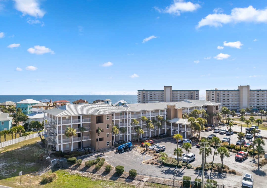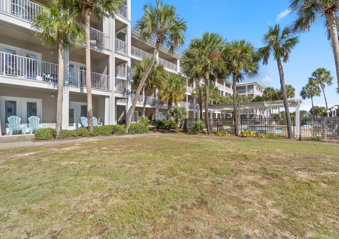You can also enjoy the community pool with hot tub, outdoor grills and picnic tables. This resort also offers outdoor showers and a water hose for washing off beach equipment. This condo is in a gated community, a code is needed to enter and exit the resort. To get to the beach exit the door of the back porch, take the pathway to the back gate, and you’re just steps away from the beach.