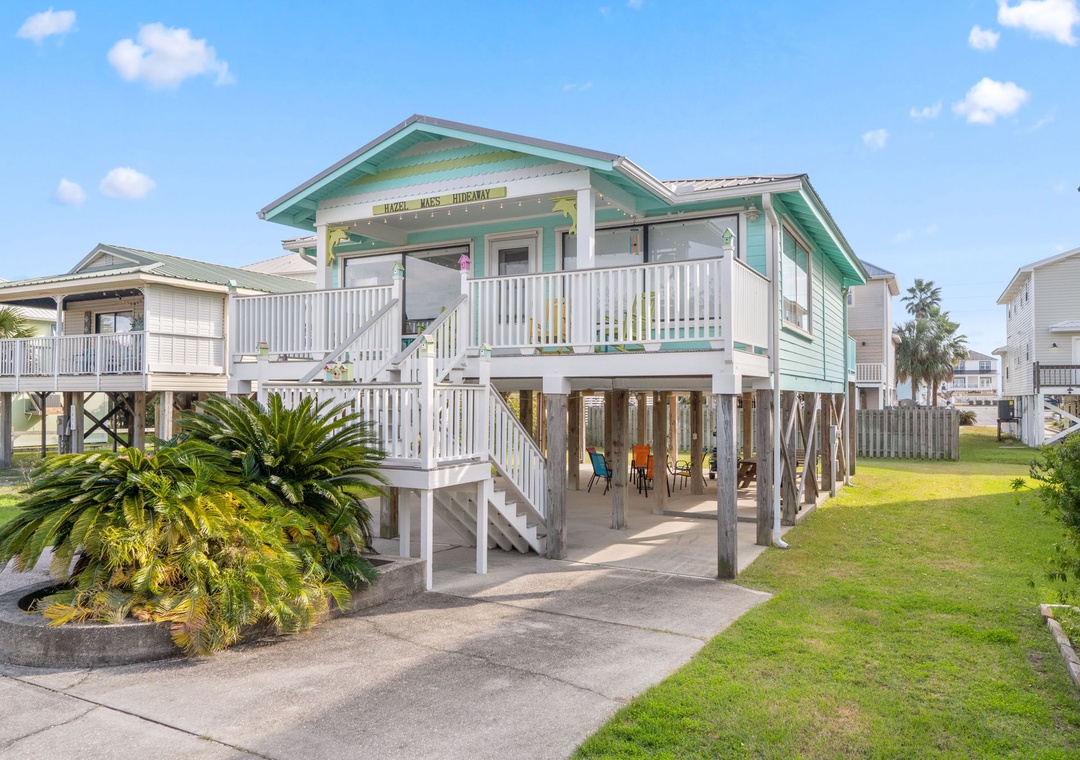 Hazel Mae's Hideaway is thoughtfully designed to accommodate up to two pets, each weighing up to 50 pounds, making it an ideal choice for pet lovers. The property includes covered parking under the house and additional driveway space, comfortably accommodating up to four cars. Whether you're seeking a tranquil retreat or an adventure-filled vacation, Hazel Mae's Hideaway provides the perfect home base, combining modern amenities with the charm of a classic beach cottage.