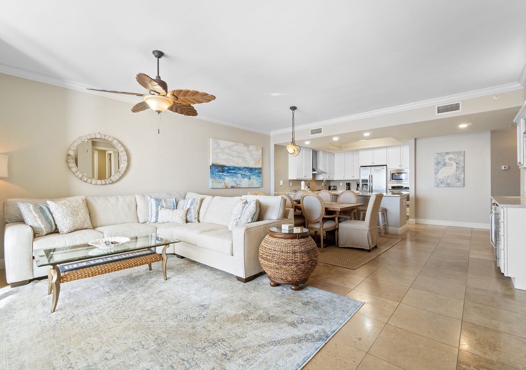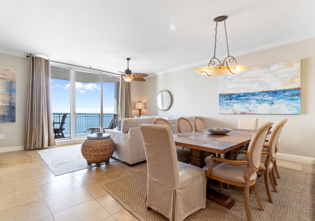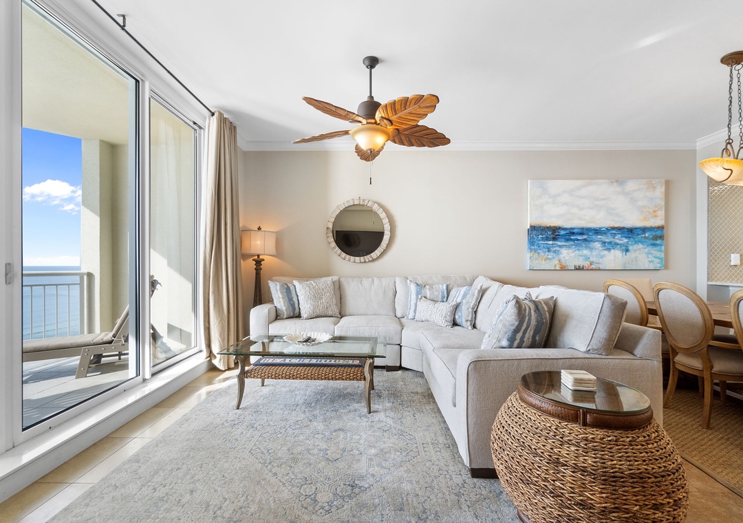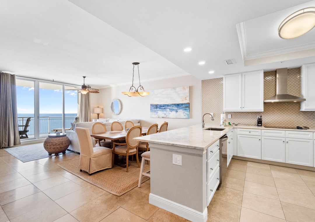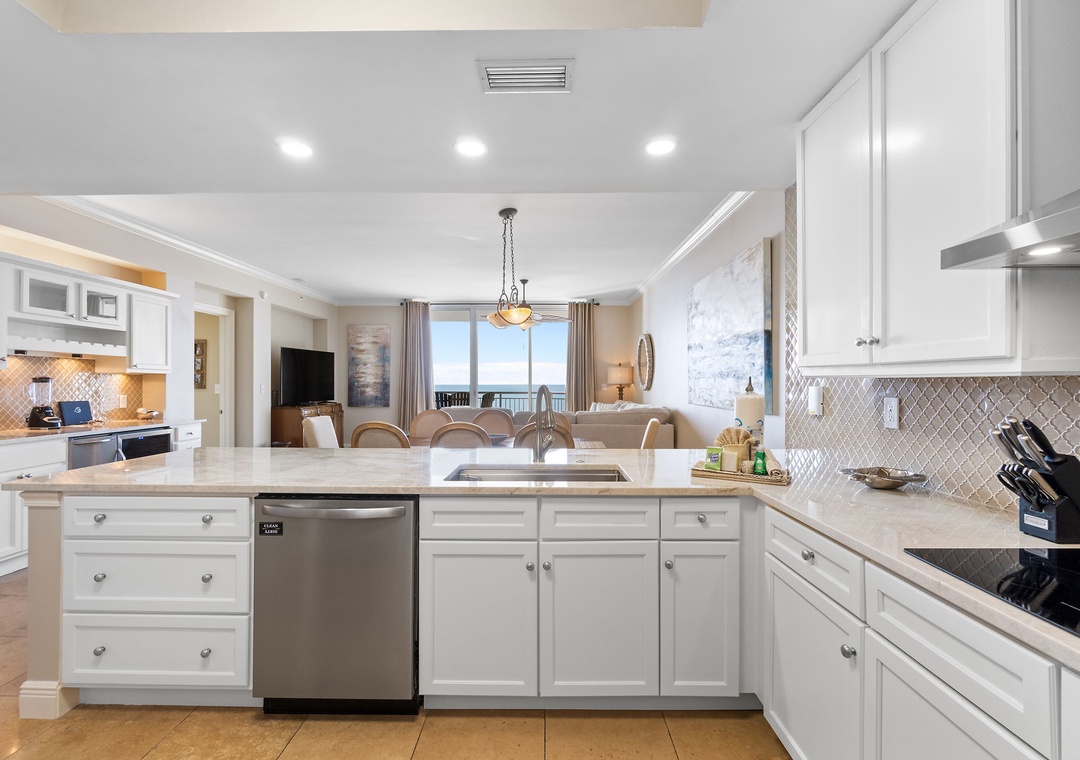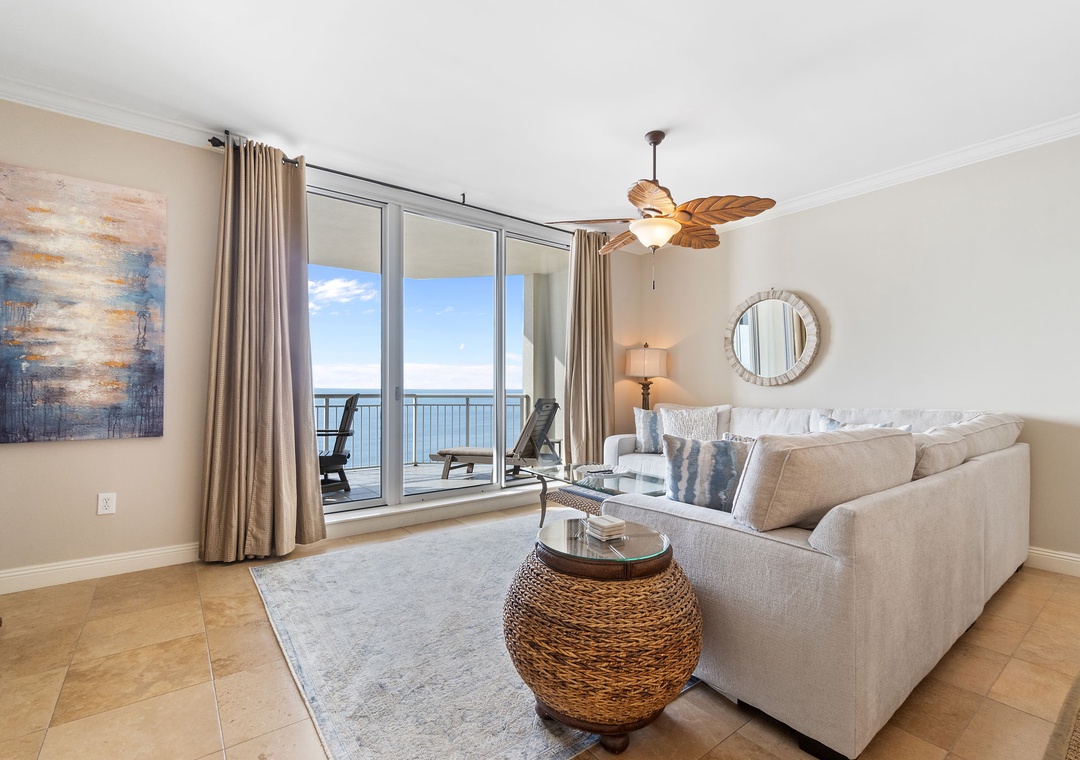 Step into luxury in this exquisite 16th-floor, 3-bedroom, 3-bath condo, offering nearly 2,000 square feet of contemporary comfort. Nautically inspired décor enhances the modern living area, which features brand-new designer furnishings, a 60” flat-screen TV, and floor-to-ceiling sliding glass doors that open to a beachfront balcony. Let the gentle waves and coastal breeze wash over you as you relax in this serene retreat.