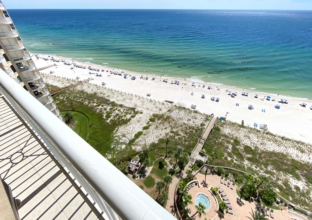 We met some friends of ours at this condo to enjoy a leisurely week on the beach. The condo is very quiet and private. Located on the 16th floor, you have a bird's eye view of the white sands of the Gulf. It is very nicely equipped with kitchen appliances. Each bedroom has an en suite bath and the living area is large and comfortable. The furnishings are all clean and comfortable. The decor is tasteful. It was easy to go straight from the condo to the ground floor and a short, easy walk to the beach. We rented chairs and umbrellas almost every day that we were there. The pool is large and has lots of chairs. We would definitely return to this condo again! We rated it 5 stars!- Reviewed On: 6/9/2023