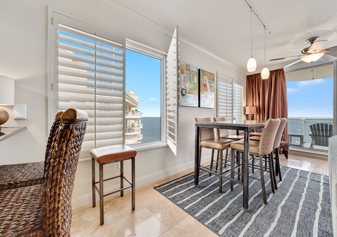 Elevate your Gulf Coast getaway by staying in this stunning 18th-floor, 3-bedroom, 4-bath deluxe corner unit at Indigo Resort. This exclusive "deluxe" rental offers the same square footage as the 4-bedroom units, with the added bonus of a den. Nestled along one of the Gulf Coast’s most pristine shores, this resort combines style, luxury, and endless amenities, providing the perfect setting for an unforgettable vacation. The gourmet kitchen, equipped with granite countertops, custom cabinetry, and stainless-steel appliances, makes meal preparation a breeze, whether you’re enjoying breakfast at the bar or dining at the elegant table with seating for six while admiring the breathtaking Gulf views.