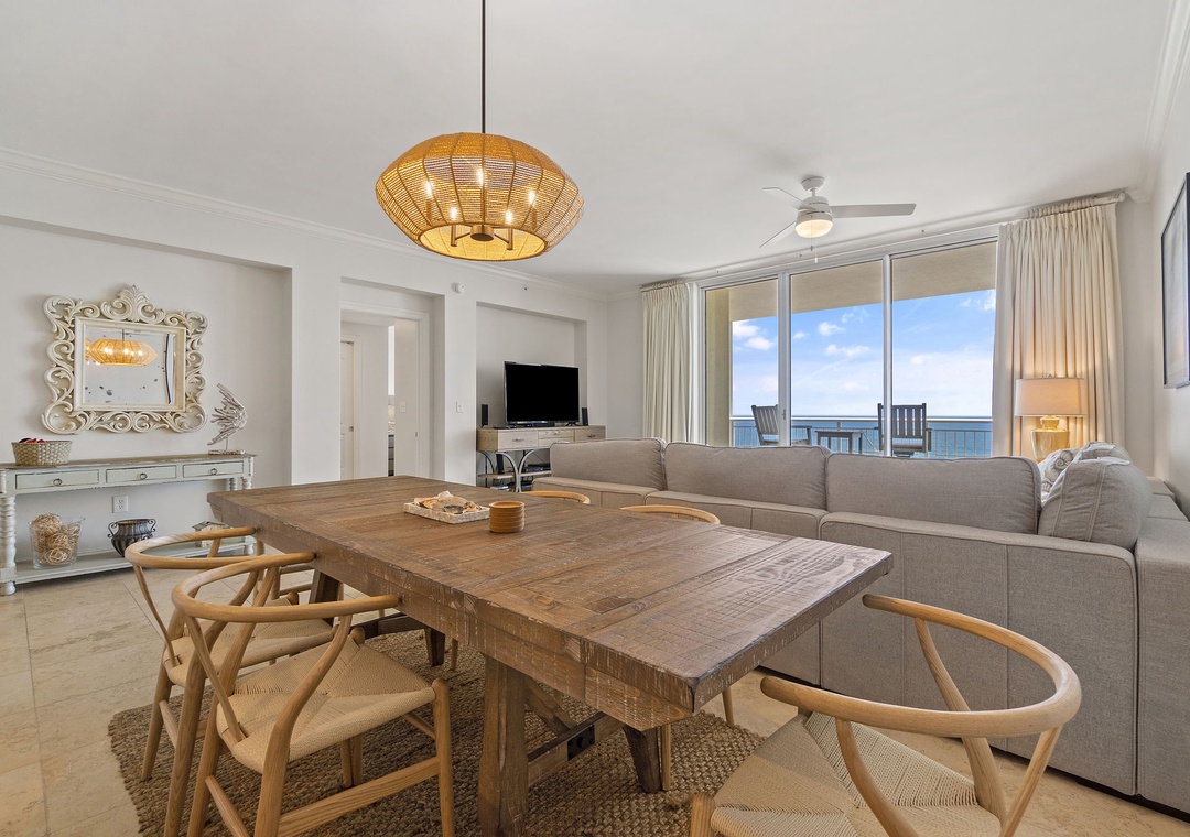 Enjoy a chic and luxurious getaway at this 12th-floor, 3-bedroom, 3-bath Indigo unit in Perdido Key. The newly updated living area features stylish décor, a large-screen TV, and a dining table that comfortably seats eight. The fully equipped kitchen includes a stainless-steel side-by-side refrigerator, an ice maker, a Nespresso Vertuo espresso machine, and plenty of cookware—perfect for entertaining. The master king suite offers stunning beach views, a spacious en suite bathroom with a separate shower, while the second bedroom has a king bed and the third a queen bed, each with an attached bathroom and luxury amenities. Two twin rollaway beds provide additional sleeping options, and a full-size washer and dryer ensure added convenience during your stay. Step out onto the spacious balcony to soak in the breathtaking beachfront sunsets.