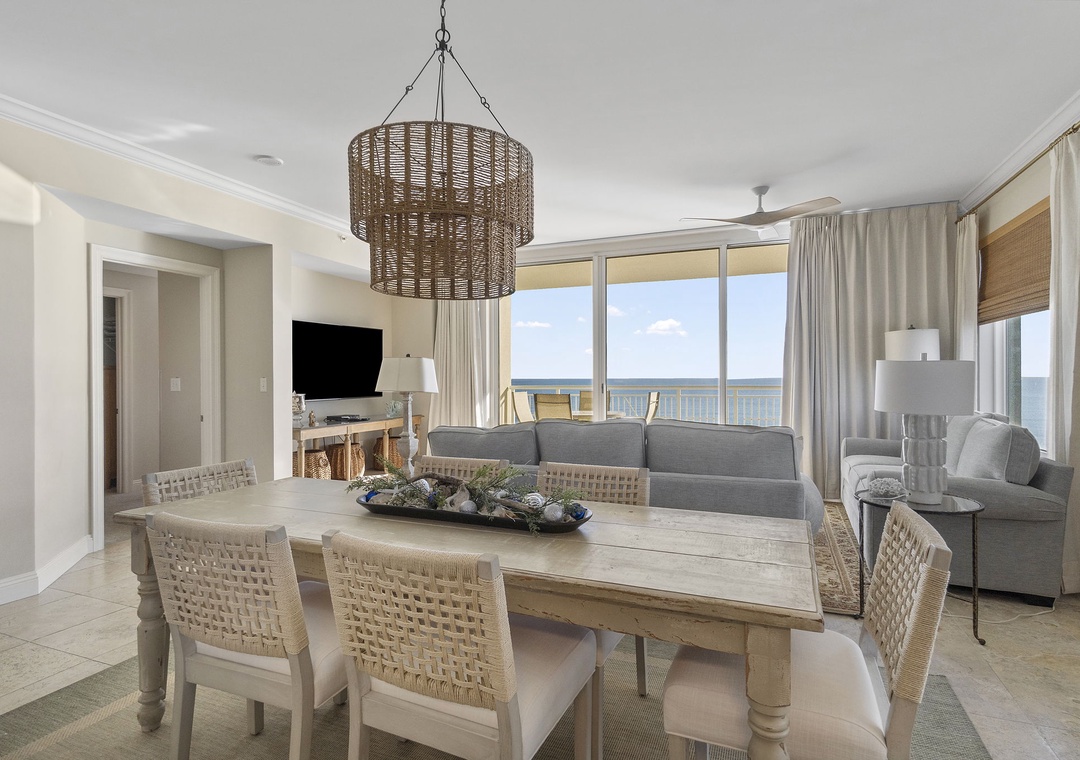 Welcome to Indigo West 1404, your luxurious retreat in the heart of Perdido Key, Florida. This stunning 3-bedroom, 4-bathroom condo offers an unparalleled beachfront experience, perfect for families and groups of friends. The spacious layout features three king-sized bedrooms, each with en-suite bathrooms, ensuring privacy and comfort for all guests. The living area is open and airy, with a modern kitchen fully equipped with all the amenities you need for a self-catering stay. This corner unit offers an additional den with a sleeper sofa, accommodating 10 comfortably. Relax on the balcony, which offers stunning ocean views and direct access to the private beach.
