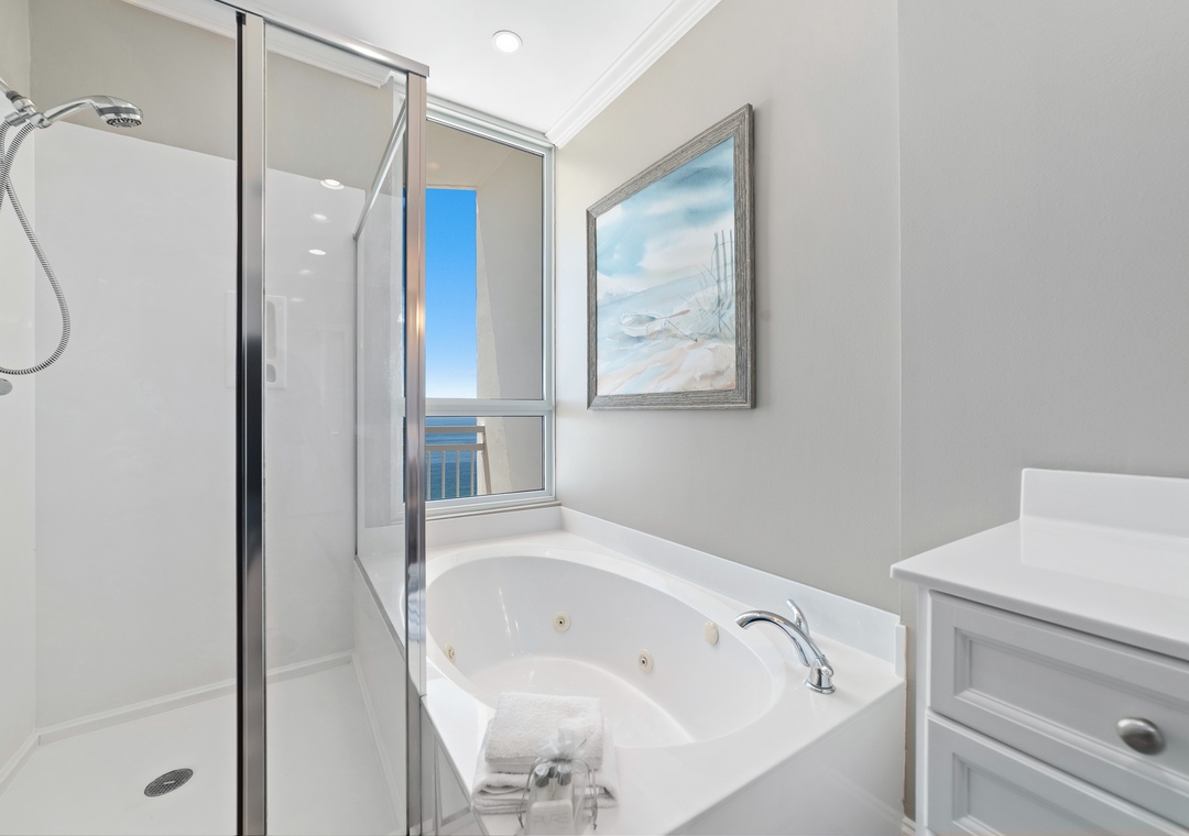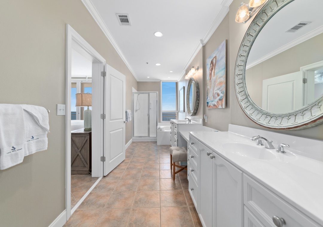 Whip up a culinary masterpiece in the fully equipped gourmet kitchen, which opens up to the living area allowing the chef to join in on the fun while cooking! Catch up on some much deserved rest with three luxuriously appointed bedrooms. You deserve to be pampered, and after a long day at the beach a lush bubble bath is the perfect way to end the day! The ensuite master bath boasts a large jacuzzi tub, plus a separate walk-in shower. Each bedroom features a king bed. Your every whim is satisfied when you vacation at La Playa!