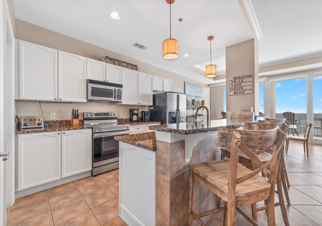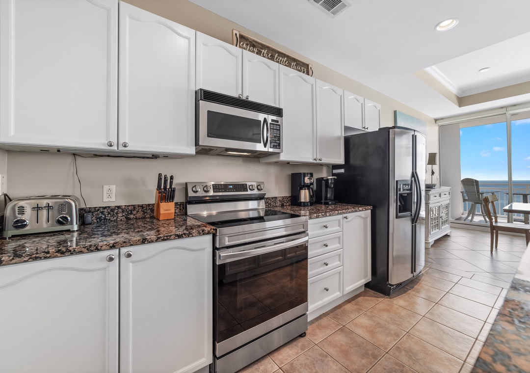 Thank you for your kind words, Debbie! We're pleased to hear that you enjoyed the well-equipped kitchen and comfortable balcony. We look forward to having you back for another stay! ~Sunny Regards, Luxury Coastal VacationsLuxury Coastal Vacations staff
