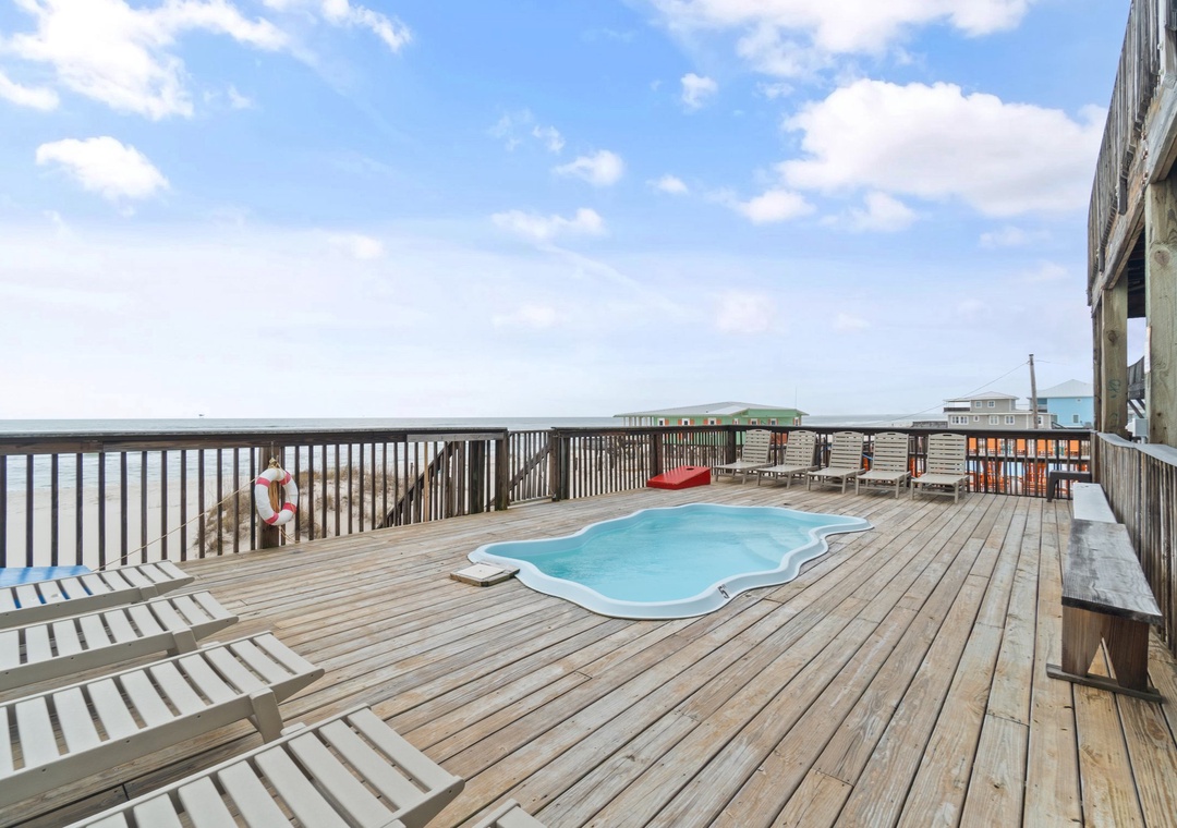 Ideal for large families or group getaways, this delightful home offers both sides of the duplex for an exclusive experience. Delight in a private 5 ft dipping pool on the beachfront patio. Inside, revel in modern conveniences such as central air conditioning, two fully equipped kitchens, ten bedrooms, complimentary WiFi throughout, and the added convenience of a private washer/dryer for all your laundry needs.