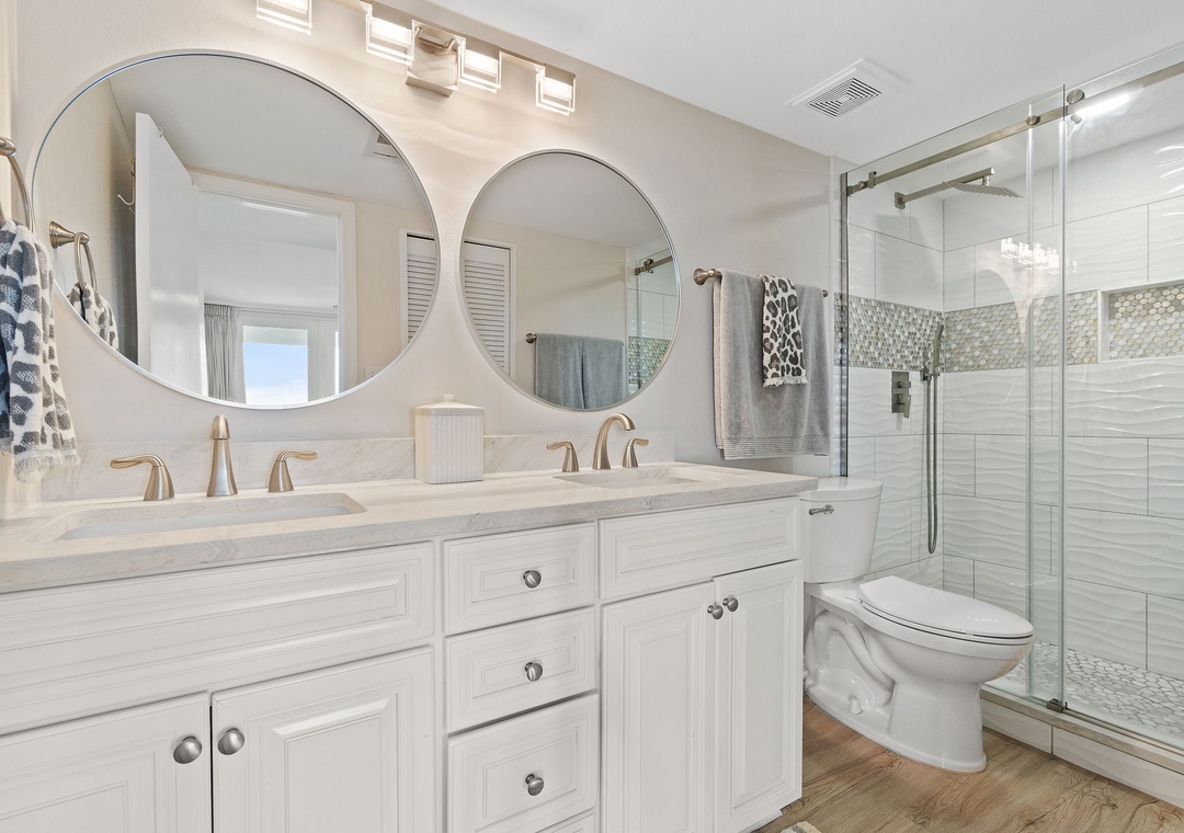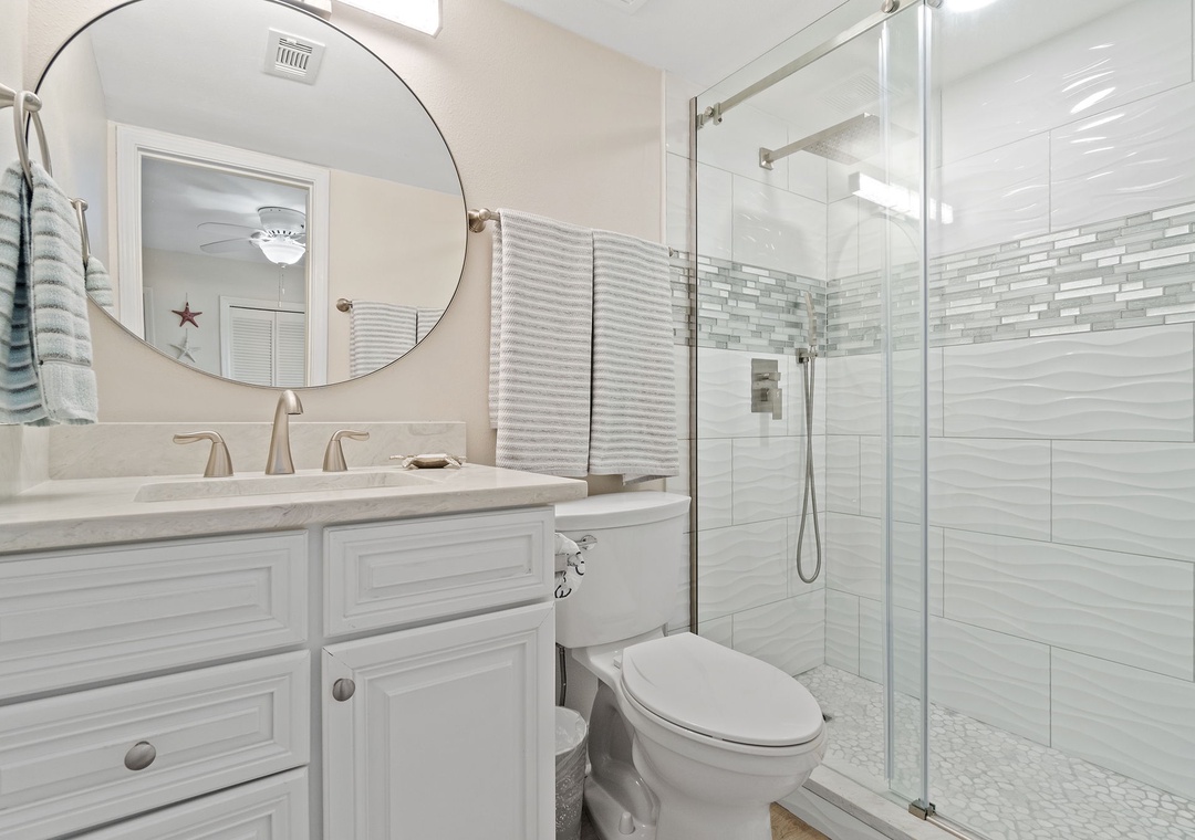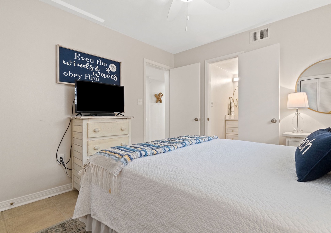 Retire to one of three luxuriously appointed bedrooms and catch some quality z’s during your much-deserved getaway! Each bedroom features premium mattress sets, high thread count linens, and flat screen TVs--- you’re sure to indulge in some quality rest and relaxation! The newly renovated primary suite is equally impressive with beachfront balcony, luxurious king bed, and a huge walk-in shower. The second bedroom features a queen bed, while the third offers a twin over queen bunk with a single twin as well. The queen sleeper sofa in the living room affords additional sleeping space, allowing for comfortable accommodations for up to 8. Enjoy the vacation of a lifetime and book your next beach getaway at Lei Lani today!