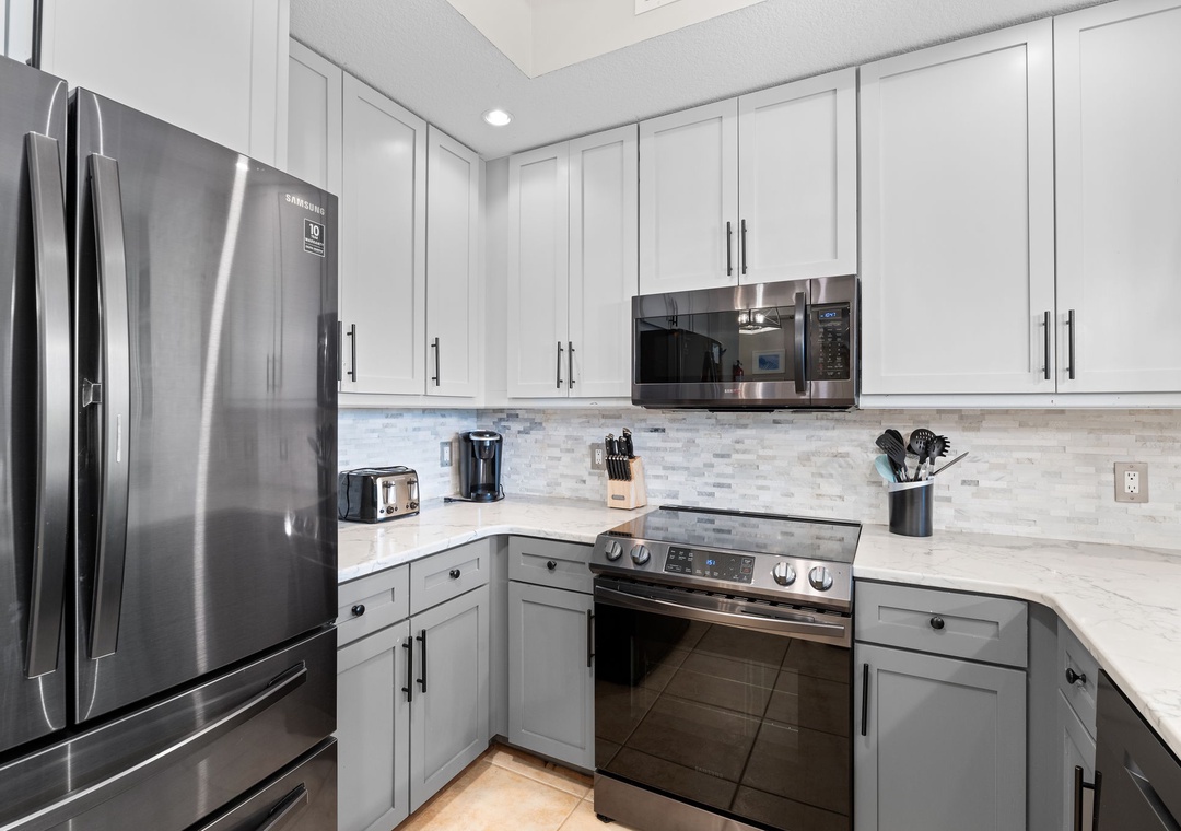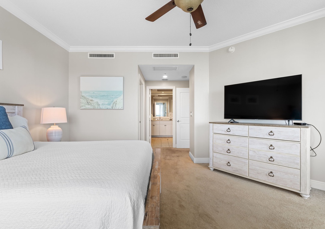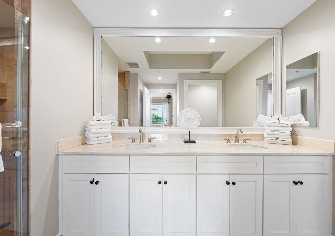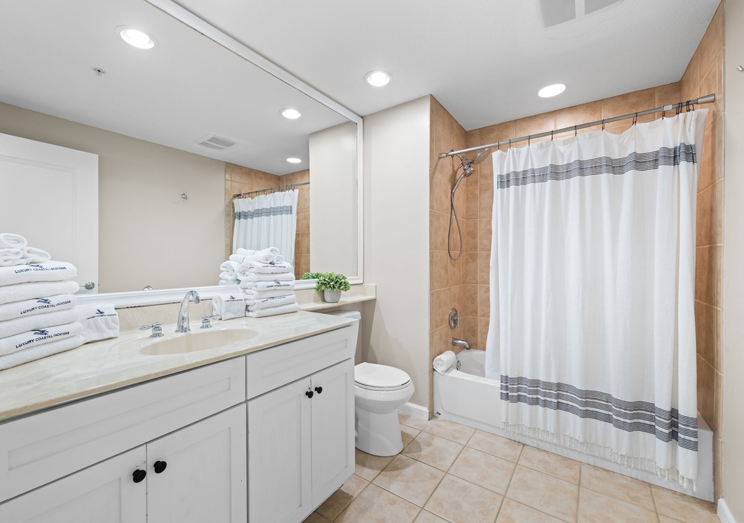 Retire to one of two luxuriously appointed bedrooms with queen beds in the master and second bedroom. The bonus room features a twin bed with a twin trundle under, perfect for the kids! Catch some quality z’s during your much-deserved getaway! With each featuring premium mattress sets, posh bedding and high thread count linens, you’re sure to indulge in some quality rest and relaxation!