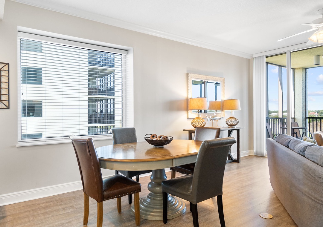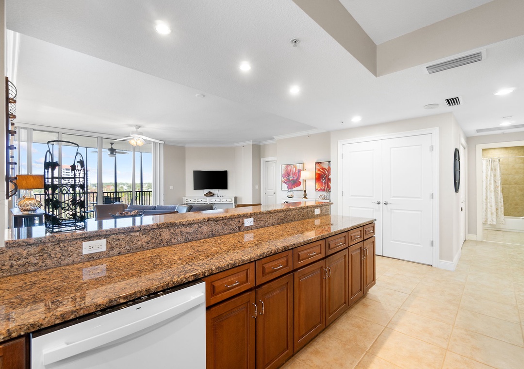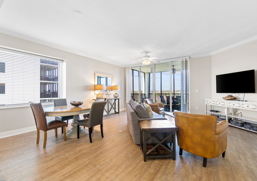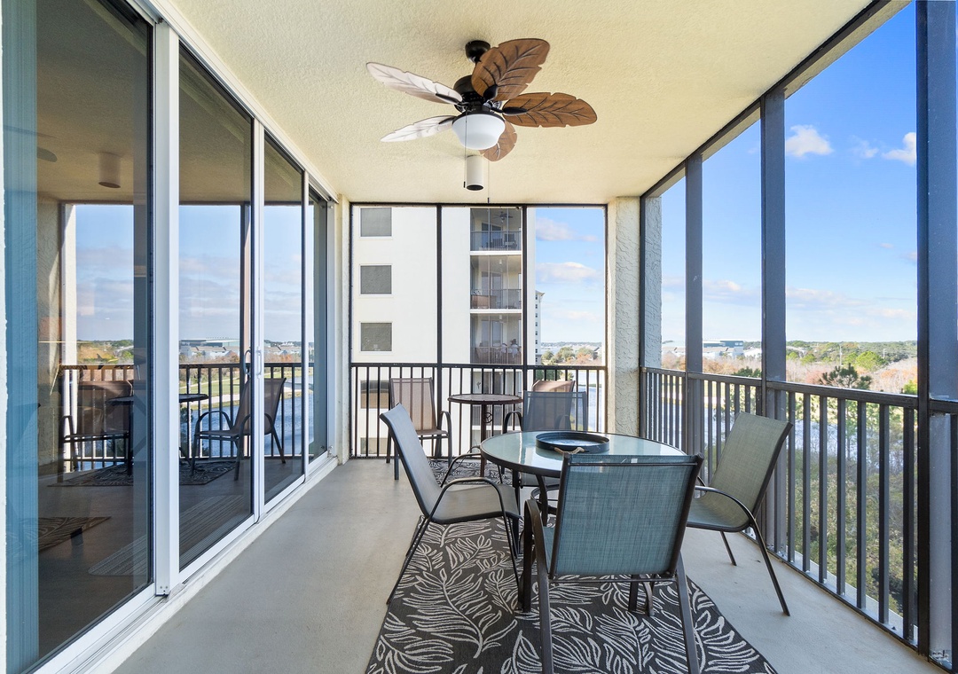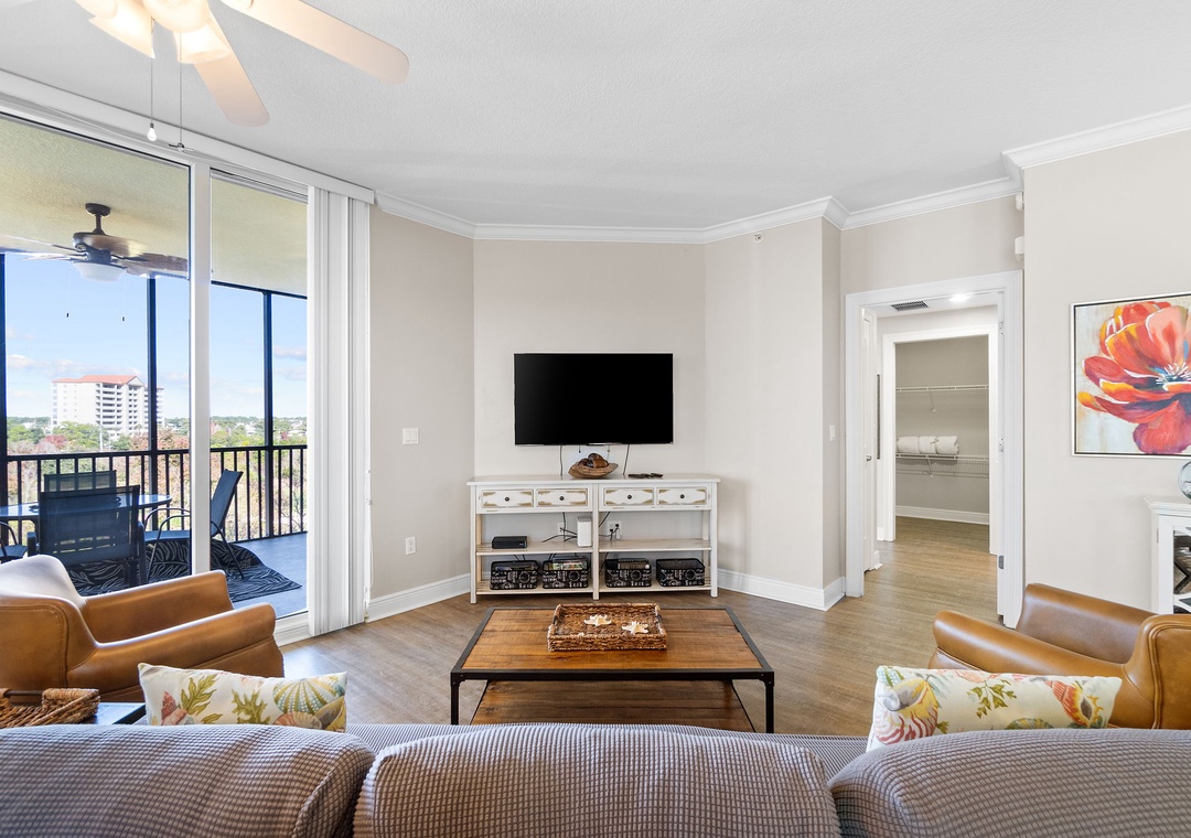 This chic 3 bedroom unit features a living area that is the perfect space for lounging and spending quality downtime complete with balcony access! The floor-to-ceiling sliding glass doors open to your screened-in patio. The gourmet kitchen offers everything needed to inspire your inner-chef, featuring top of the line appliances and granite countertops, plus all the small appliances, utensils and cookware needed to prepare a culinary masterpiece! The dining area offers seating for the whole family, with tons of additional seating at the breakfast bar.