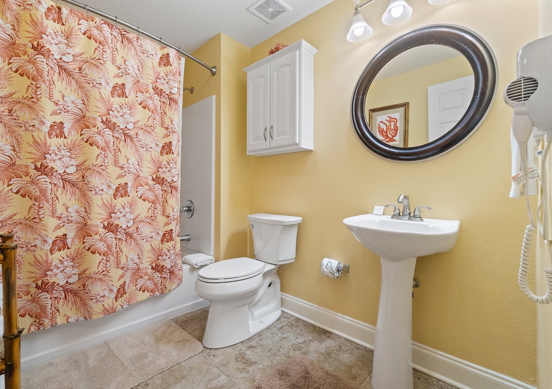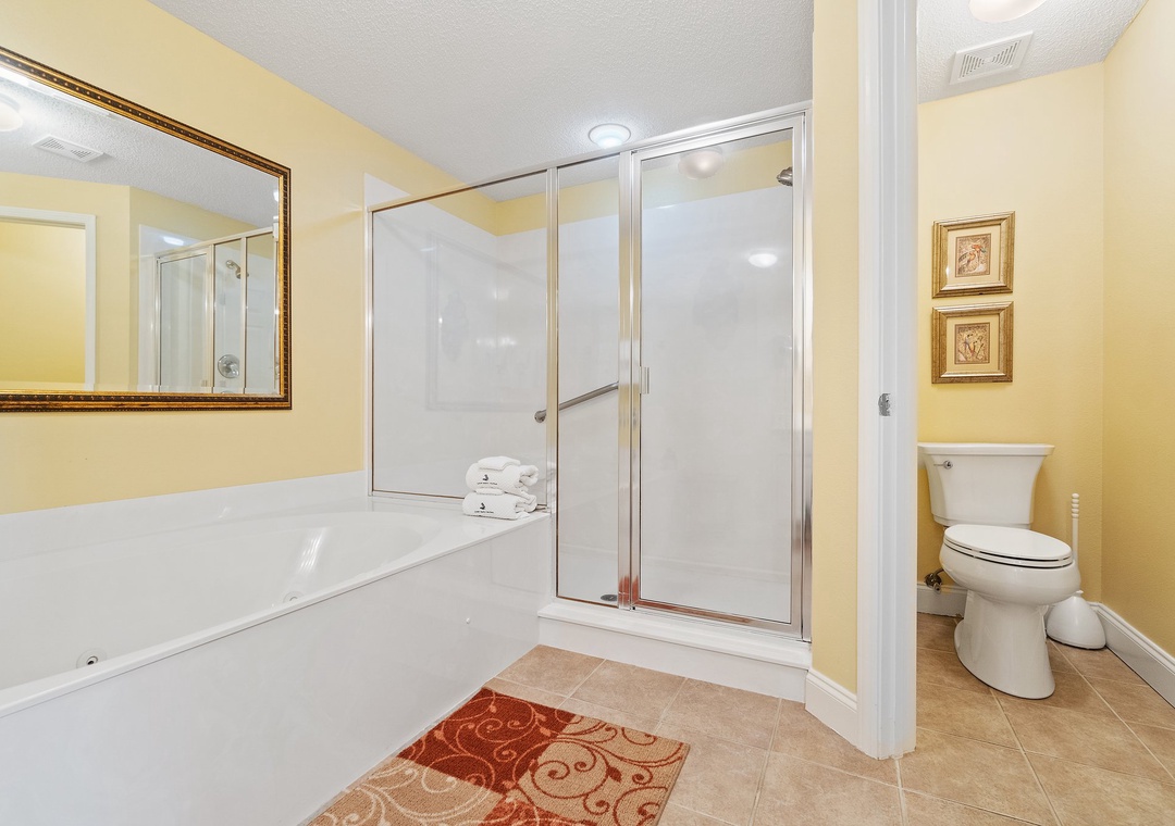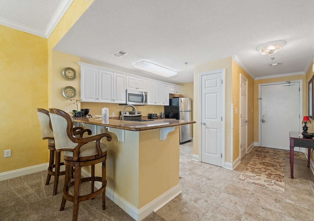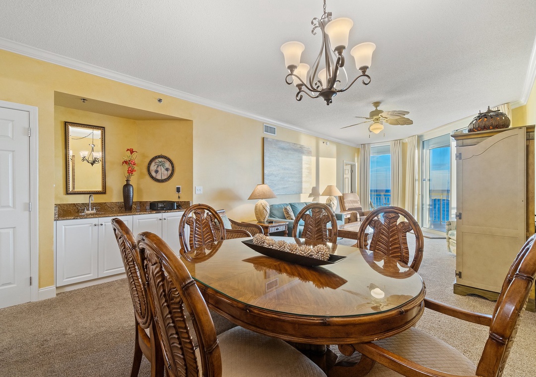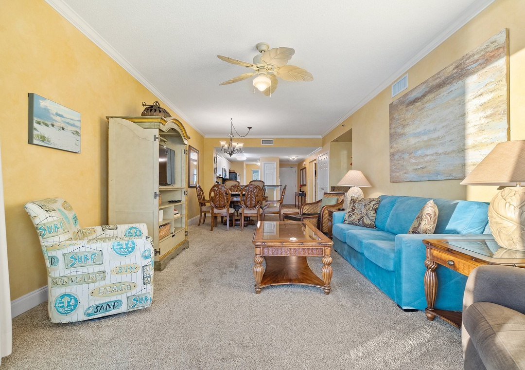 Retire after a long day of recreation to one of 2 luxuriously appointed bedrooms and catch some quality z's! With each offering premium mattress sets, high thread-count linens, posh bedding and flat screen TVs, you're sure to enjoy quality rest and relaxation during your much-deserved beach getaway! The master offers a king bed, the second includes a King bed, and the sofa in the living room pulls out for a queen sleeper sofa, which allows 6 guests to sleep comfortably! Pamper yourself after a day on the beach in the master's glamour bath, complete with a 2-person jetted tub and large separate walk-in shower, plenty of counter and cabinet space and plush oversized 100% cotton bath towel sets.