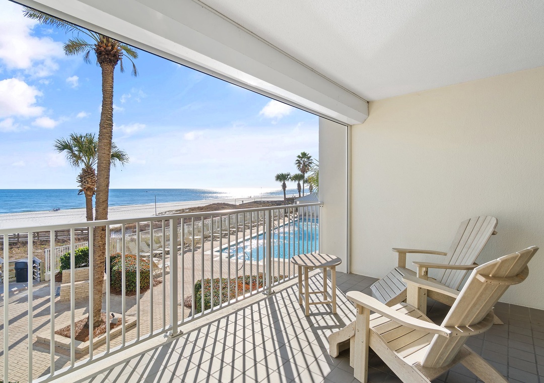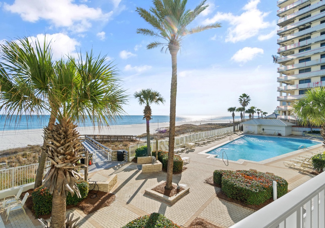 This was a second floor unit and was great! Easy access to pool and beach with views from balcony to both! Large balcony with main bedroom access. Lots of towels and linens. This was a perfect location and perfect place to stay. Very clean! I stayed here with 3 of my older boys and they loved it. We had plenty of room! We will come back!- Reviewed On: 9/13/2023