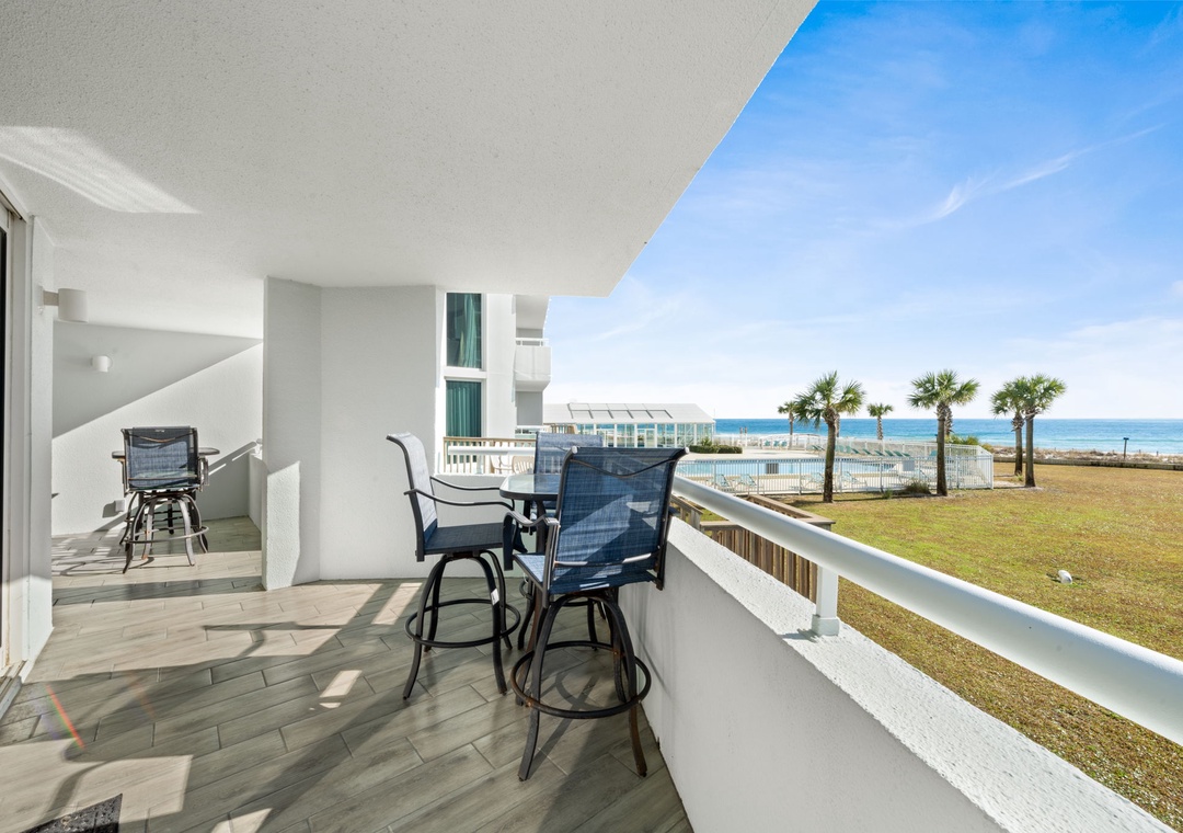 This condo is a first-floor penthouse, offering the rare combination of a private balcony plus an expansive open deckāthe only unit in the building with this feature. Enjoy direct access down your private steps leading straight to the pools and beach. You can even relax on the deck and watch your children play in the pool just steps away. A beautiful glass-enclosed heated pool allows for swimming year-round, even in inclement weather.