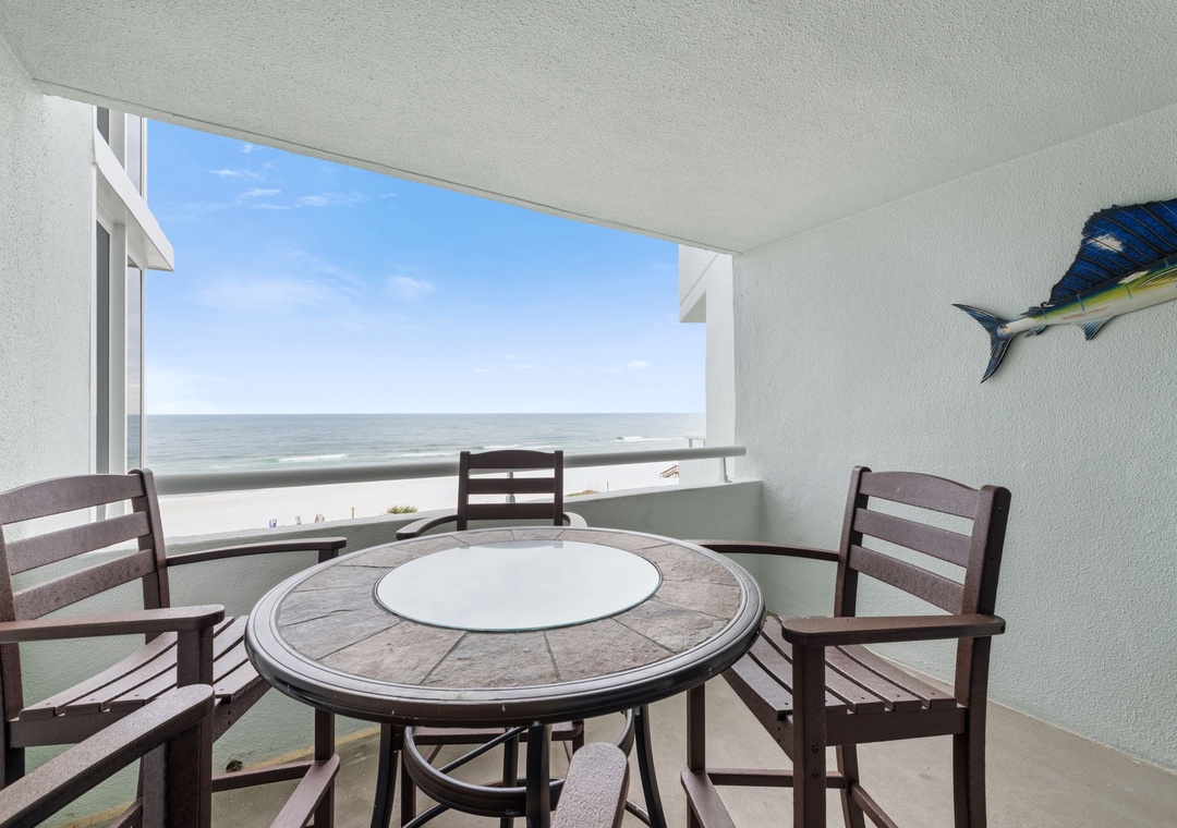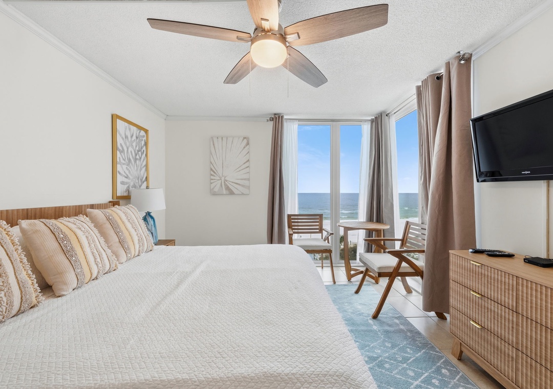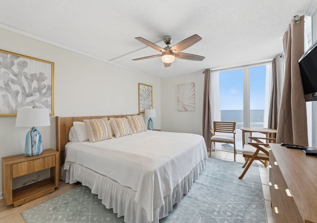 Escape to a slice of paradise and discover Florida’s best-kept secret when you stay at this stunning 4th-floor beachfront retreat at Perdido Sun! Nestled on the serene east end of Perdido Key, this 2-bedroom, 2-bath condo offers the perfect blend of luxury, comfort, and coastal charm. With over 1,100 square feet of open-concept living space and elegant tile floors throughout, this unit provides a sophisticated yet welcoming atmosphere. Step out onto your private beachfront balcony and take in the breathtaking views of sugar-white sands and emerald waters, or simply soak in the scenery from the spacious living area or master suite. Whether you're sipping morning coffee as the sun rises over the Gulf or unwinding with a glass of wine as the sky is painted in hues of pink and orange, this is the perfect setting for relaxation and rejuvenation.