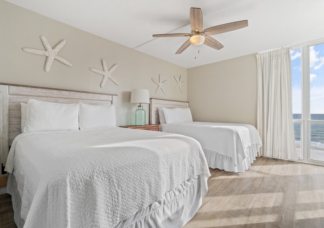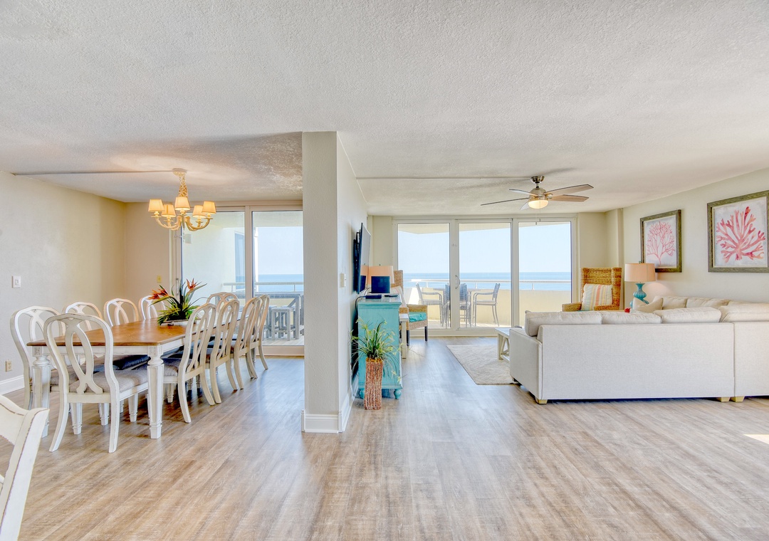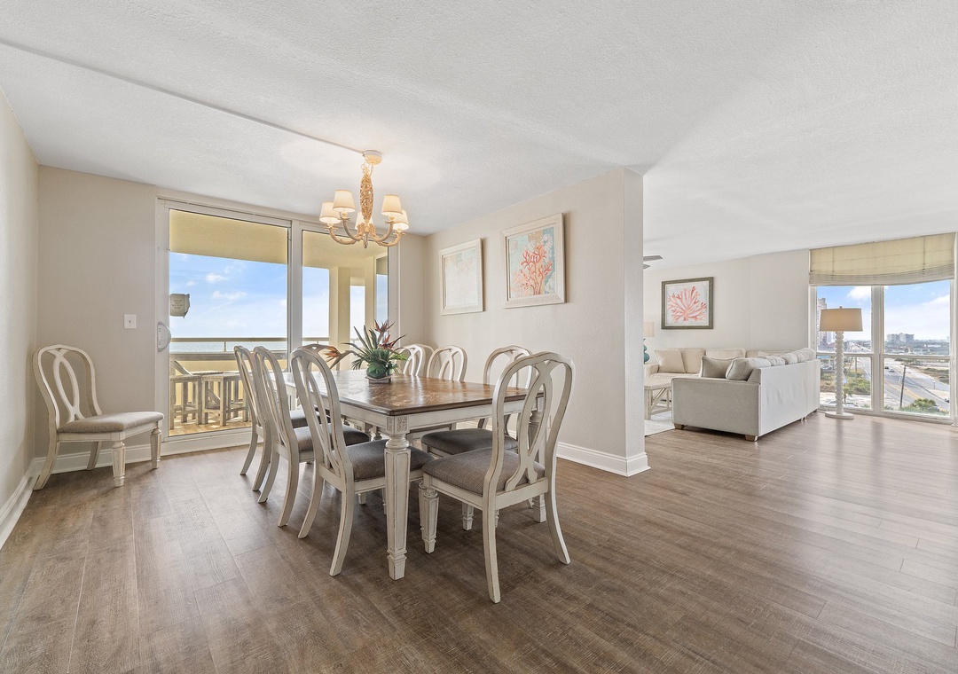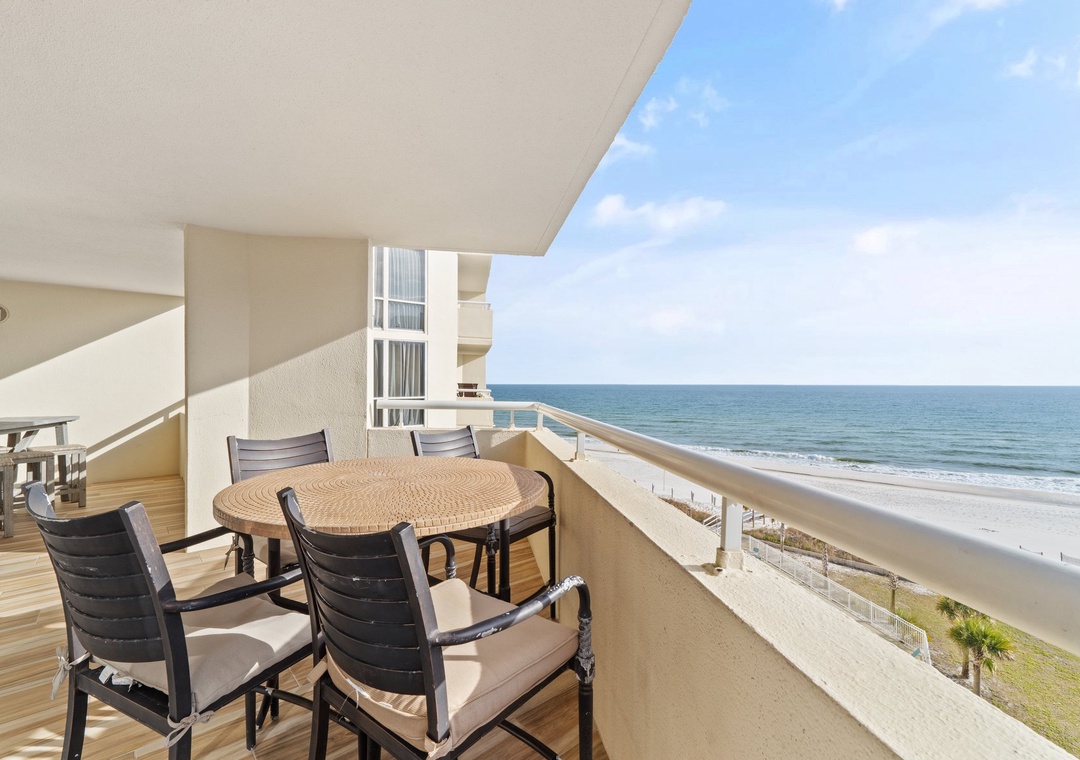Come experience the splendor of coastal living when you stay in this charming 6th floor, 3 bedrooms, 3 bath unit at Perdido Sun! Situated on an immaculate stretch of the Gulf Coast, this complex pairs relaxation and recreation, offering the best in beachfront living and resort amenities! This beautiful unit features an open and spacious floor plan, connecting the living area, kitchen and dining area! The living area hosts a plush sofa and two stylish chairs and a comfy papasan, a brand-new LCD HD television, and best of all, beachfront balcony access! Sprawling glass sliding doors give way to the expansive balcony, where you can enjoy your morning coffee.