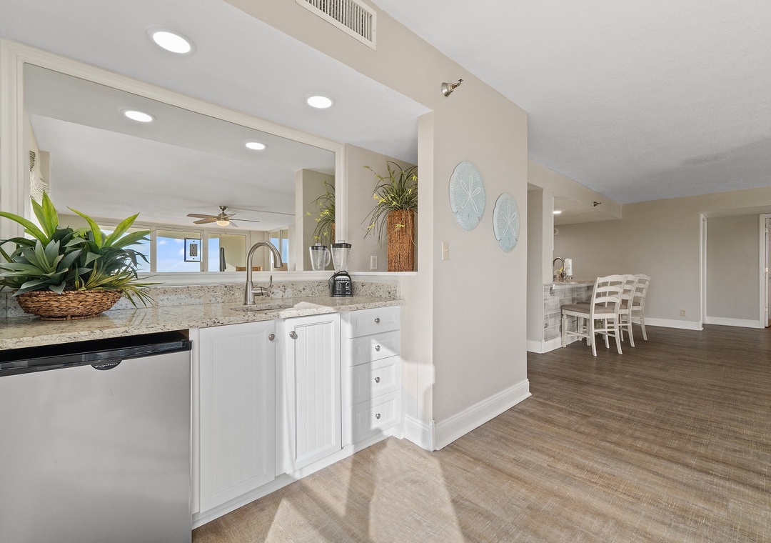 The condo was ready when promised. Check in was simple and quick. The condo itself was absolutely perfect. Very roomy and a beautiful of the Gulf. We had a small miscommunication regarding the door code, but that was resolved immediately with a single phone call. We would definitely stay here again.
