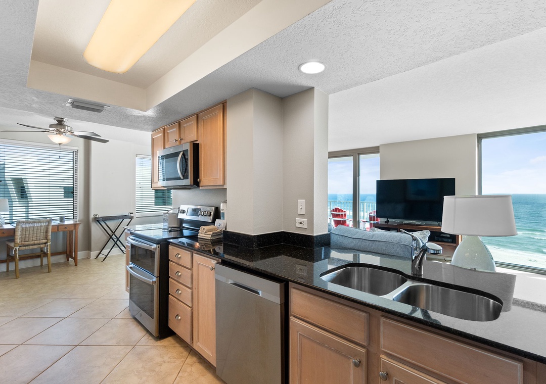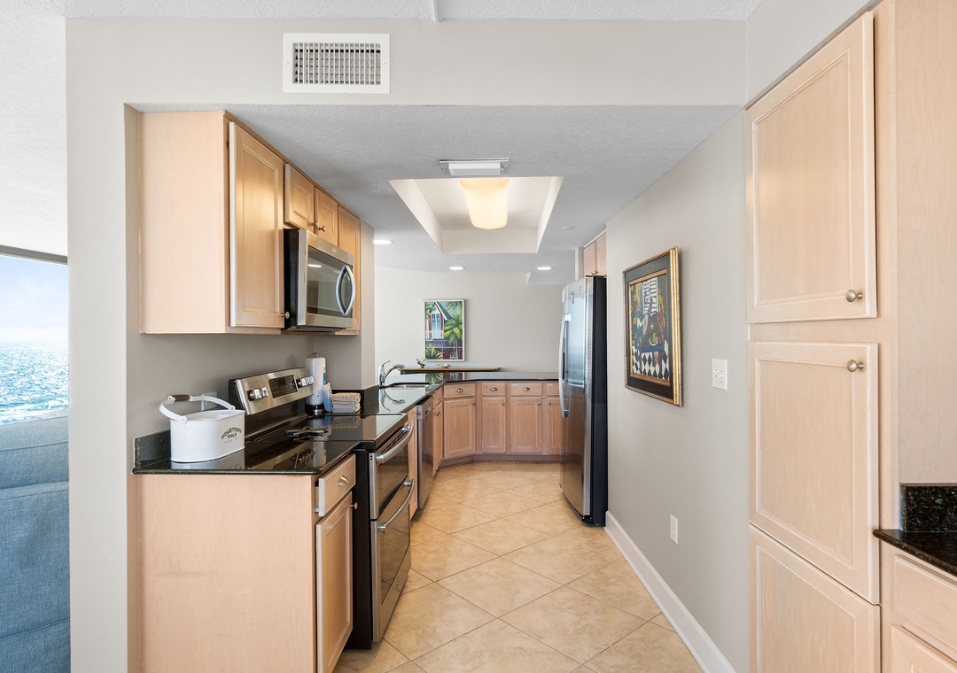 We've been vacationing on the Gulf for many years and this is by far the best unit we've ever rented. Very well equipped with a stocked kitchen, nice appliances, ice machine, updated bathrooms, etc. And as good as all this was, it still couldn't beat the incredible views. The management company was easy to work with and very proactive in making sure we had a good stay. Only complaint we might have would be the entry lobby and the elevators. The lobby is small and it was a little bit difficult to move around with carts and multiple people. The elevator on this side of the building was having issues the first day but the property management staff had it resolved within 24 hours. Overall, the complex is great because there are not hundreds of units so the beach and pool were never crowded. If we return to Perdido, we will definitely try to get this unit again.- Reviewed On: 7/4/2012