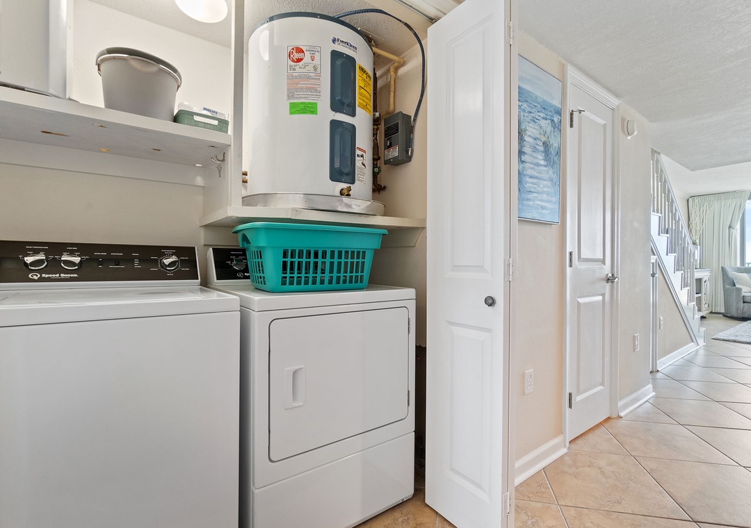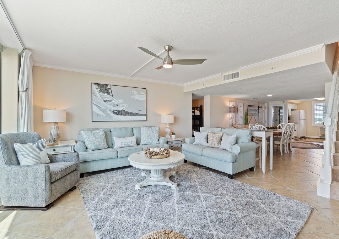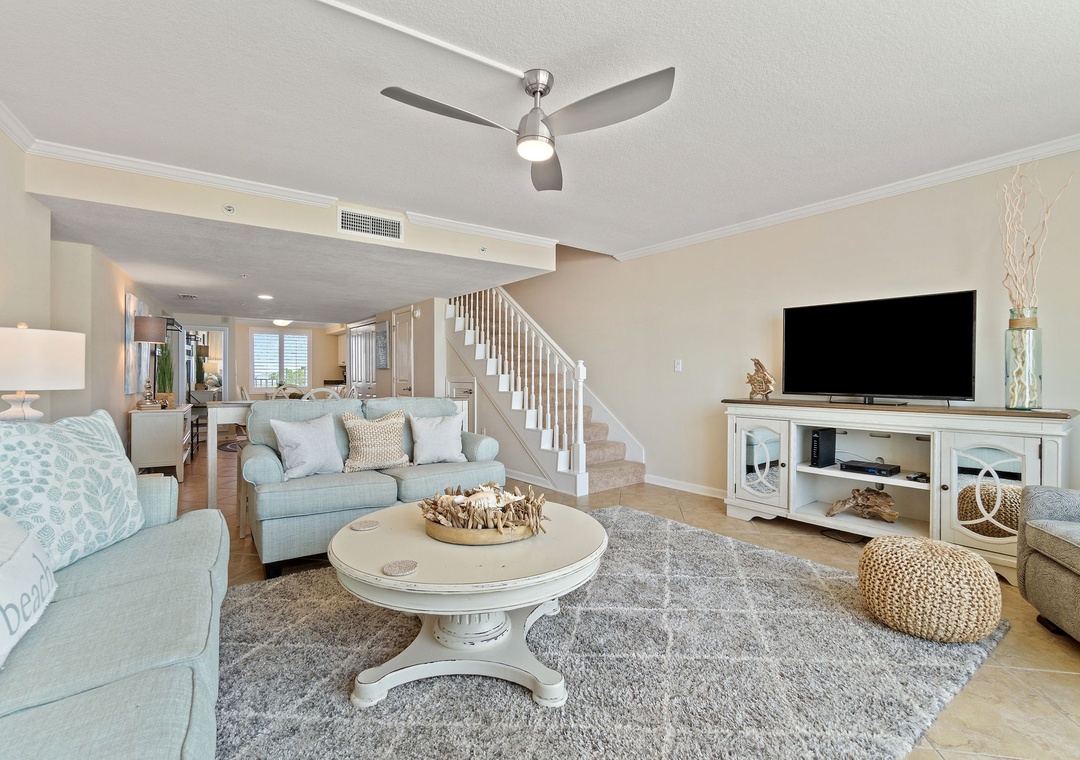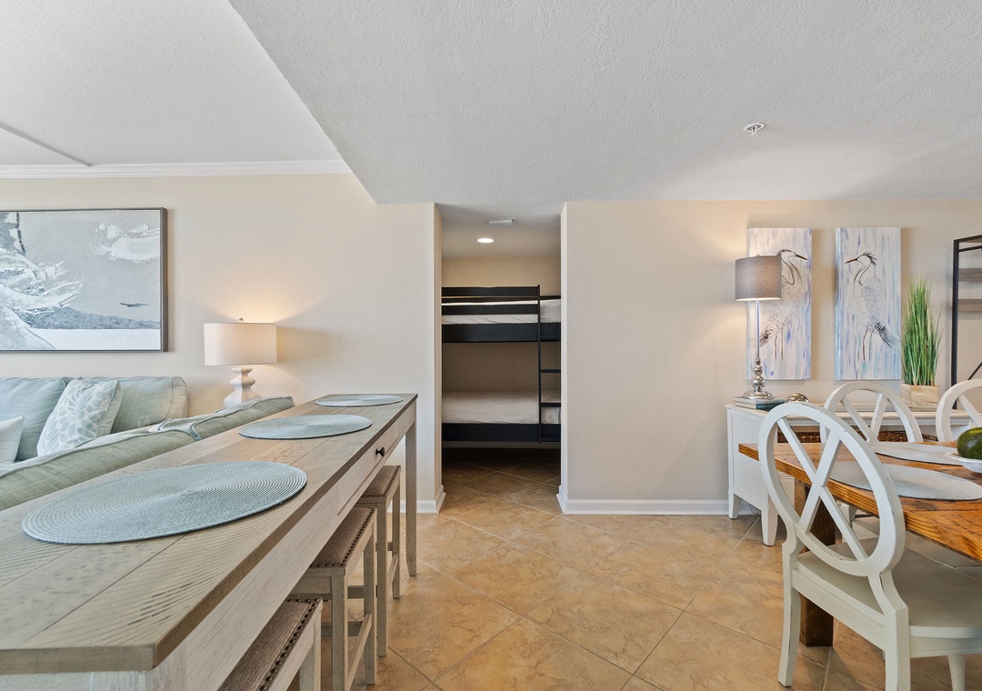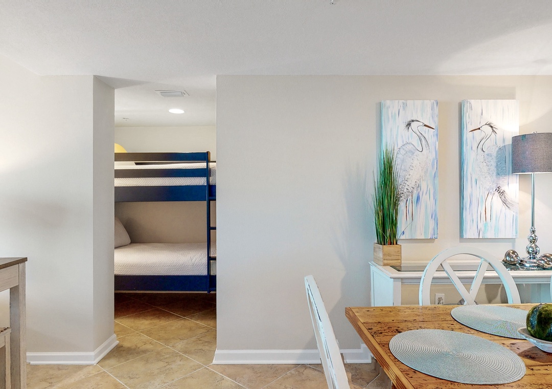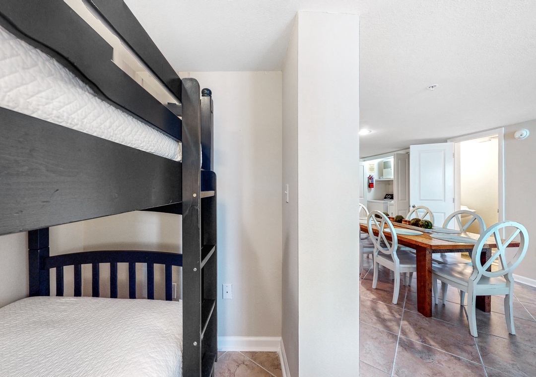 Upstairs, the spacious master suite offers a king bed, premium linens, and an en-suite bath, while the guest bedroom also features a king bed for added comfort. A cozy twin-over-twin bunk nook on the main level is perfect for kids or extra guests, allowing the condo to sleep up to 6 comfortably. Additional perks include a full-size washer and dryer, plush oversized towels, and complimentary WiFi. Whether you’re sipping coffee on the balcony or heading straight to the sand via private beach access, Perdido Towers West 307 is your gateway to coastal relaxation.
