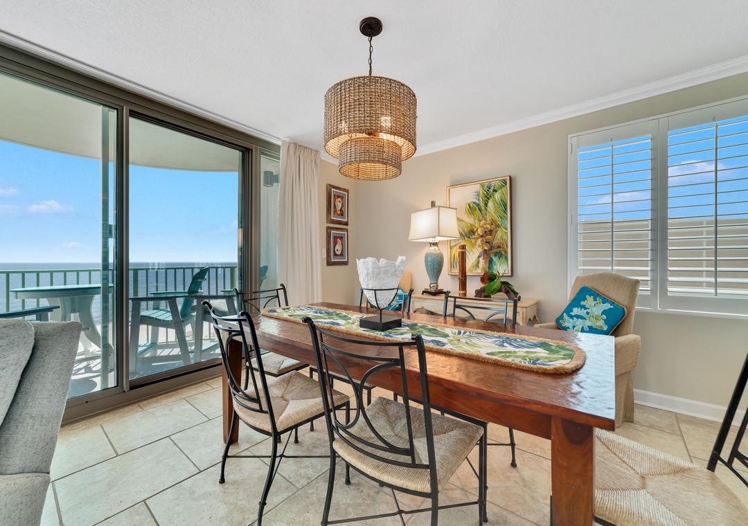 Inside, the fully-equipped kitchen features sleek stainless steel appliances and marble countertops, perfect for preparing meals to enjoy at the dining table that seats six. The luxurious master suite boasts a plush king bed and private balcony access, offering glorious sunrise views over the gulf. A second bedroom includes a king bed, while the third bedroom is furnished with two twin beds. With a queen sleeper sofa in the living room, this spacious unit comfortably accommodates up to six guests. Don’t wait—book Perdido Towers West 908 today and experience the vacation of your dreams!