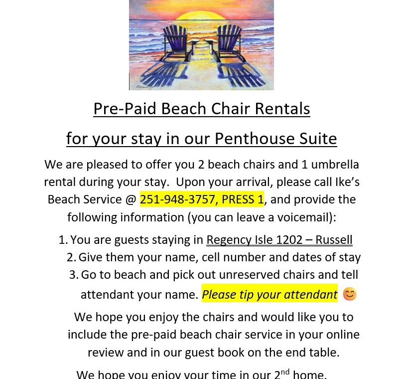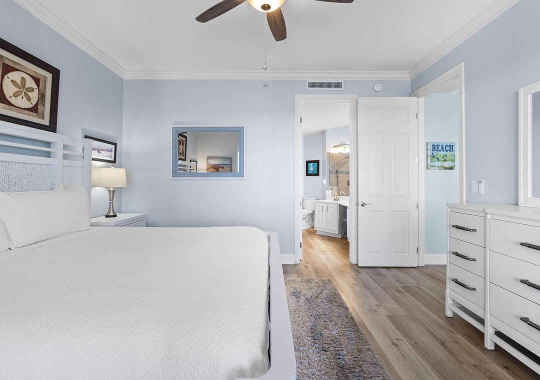 Prepare delicious meals in the fully equipped kitchen, which includes updated appliances, granite countertops, and all the cookware and utensils needed to channel your inner chef. At the end of the day, retire to one of three luxurious bedrooms, each furnished with premium mattresses, high-thread-count linens, and plush bedding. The master suite offers direct balcony access and stunning views of turquoise waters, along with a spacious ensuite bathroom featuring a garden tub, walk-in shower, and oversized cotton bath towels for ultimate relaxation. Book your stay at this Regency Isle penthouse and experience coastal luxury like never before!