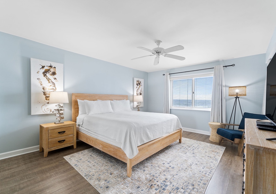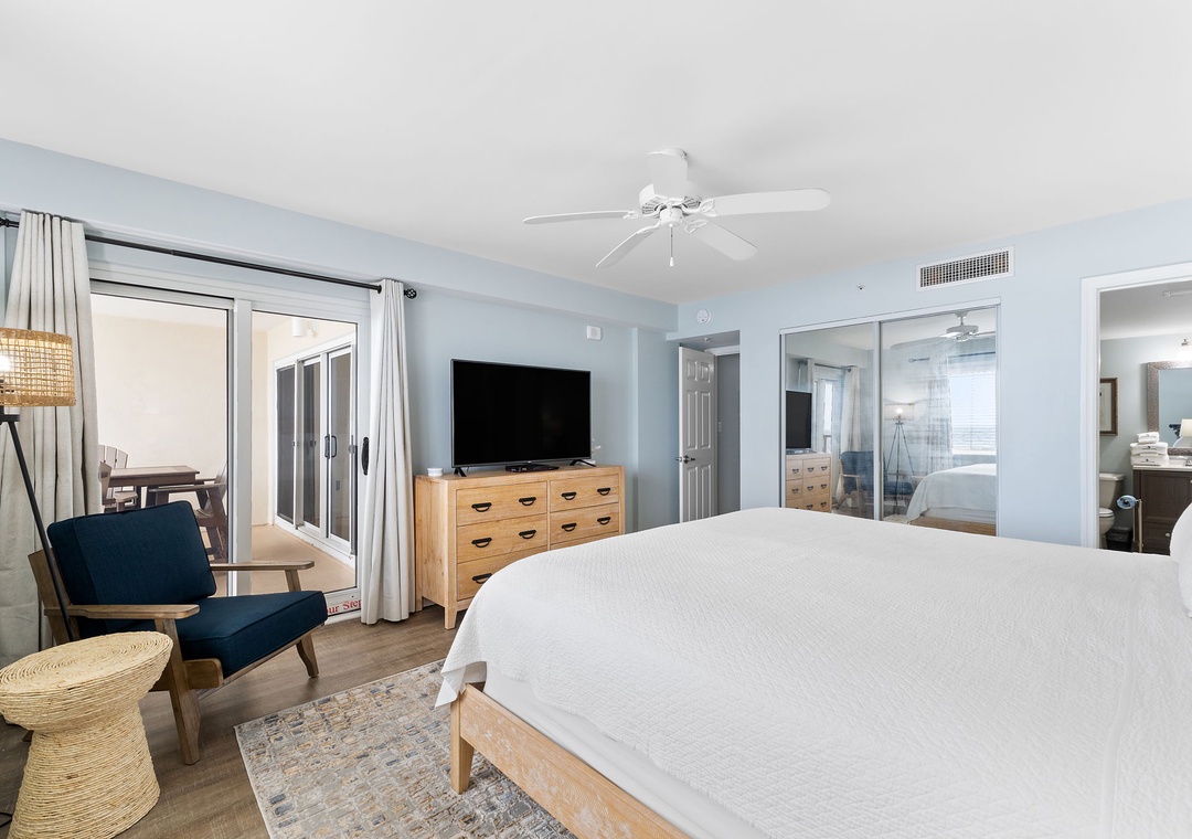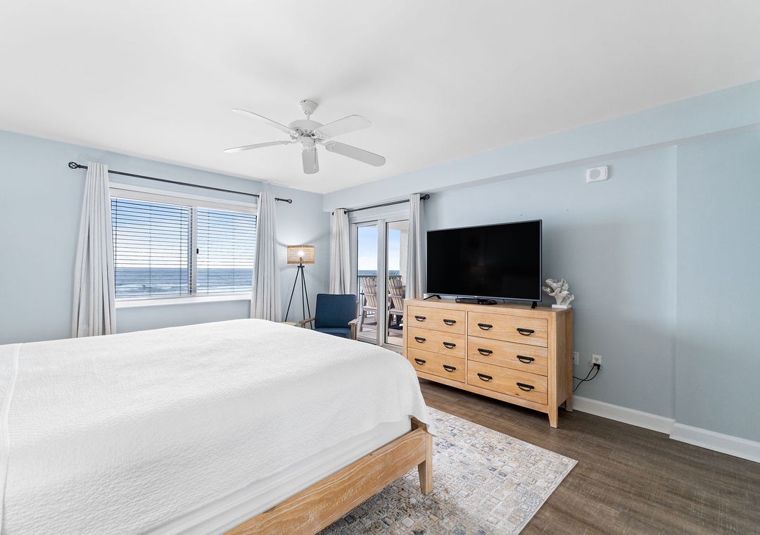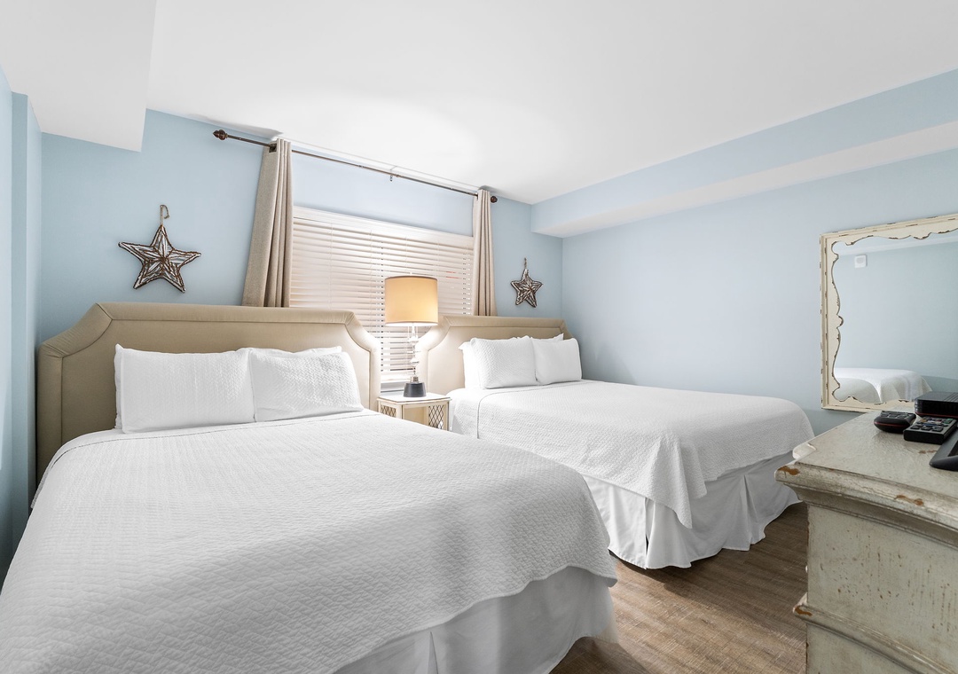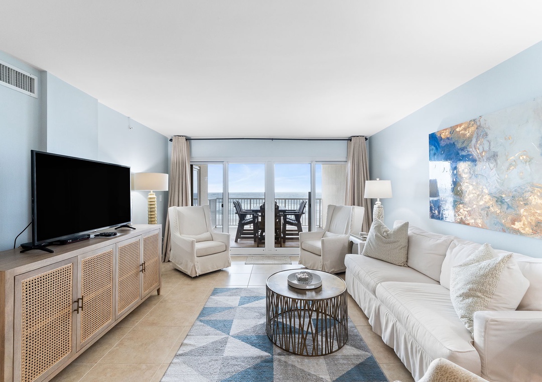 The elegantly appointed beachfront master suite will allow you to catch up on some much needed rest and relaxation, hosting a king bed with a premium mattress, a large picture window with amazing views of the gulf, full en-suite bath and beachfront balcony access! The guest bedroom offers two queens with luxurious linens and bedding, and an adjoining bath. Including the queen sleeper sofa in the living room, this unit accommodates up to 6 throughout!