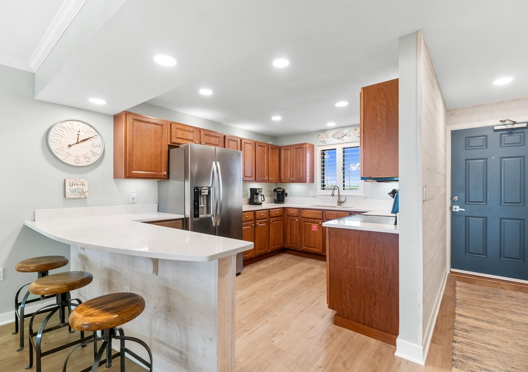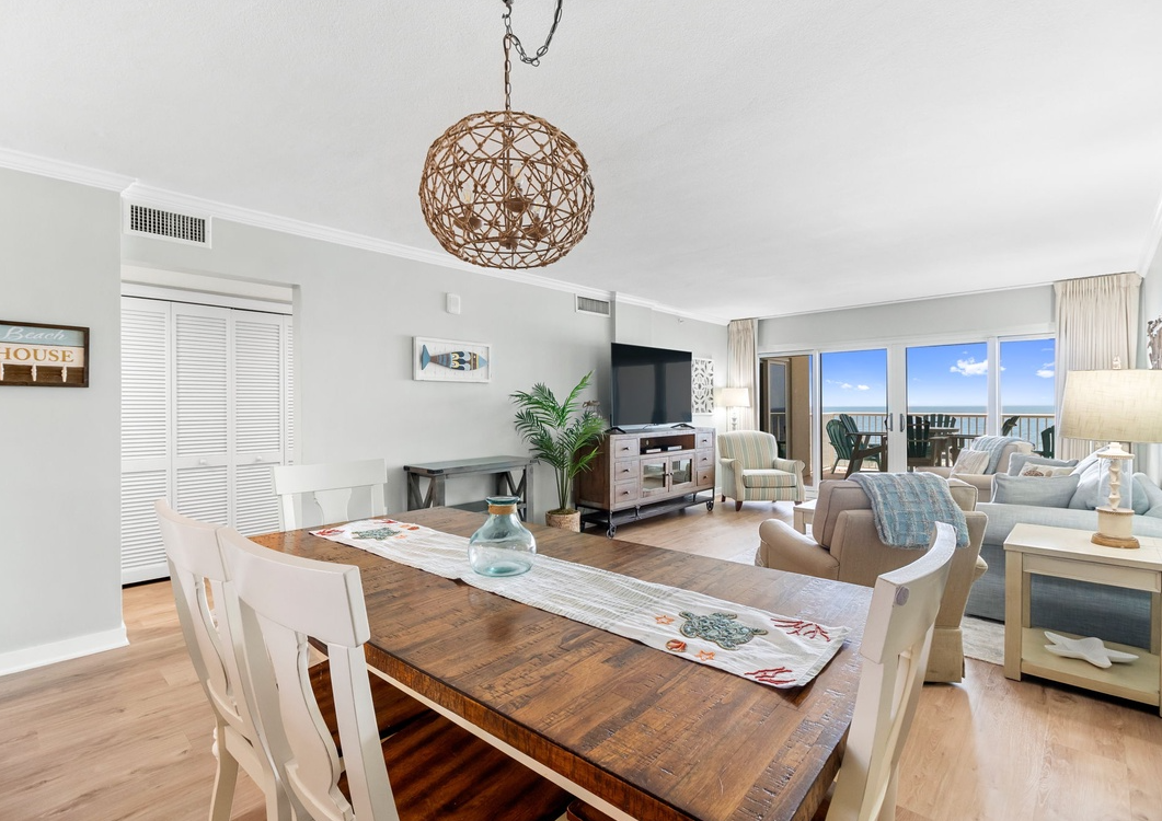 The living room offers plenty of seating, including a plush sofa that converts into a sleeper sofa, two additional cushioned chairs, a huge flat screen HDTV and most importantly, beachfront balcony access! Enjoy your morning coffee or a glass of wine while lounging on your expansive balcony and overlooking the magnificent Gulf of Mexico. You'll enjoy preparing your favorite meal in the gourmet kitchen featuring a dining area that seats 6, with additional seating at the breakfast bar.