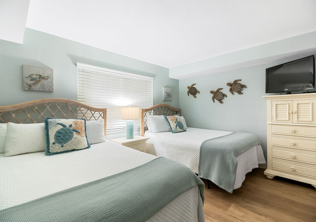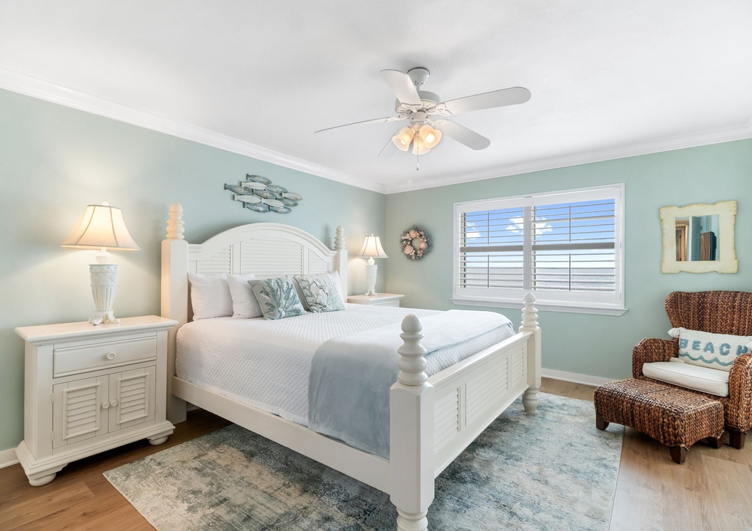 The elegantly appointed beachfront master suite will allow you to catch up on some much needed rest and relaxation, hosting a king bed with a premium mattress set, a large picture window with amazing views of the gulf, full ensuite bath with walk-in shower and beachfront balcony access! The guest bedroom offers two queen beds with luxurious linens, deluxe bedding and an adjoining bath. The queen sleeper sofa in the living room allows for flexible sleeping arrangements! As another bonus, a full size washer and dryer is included!