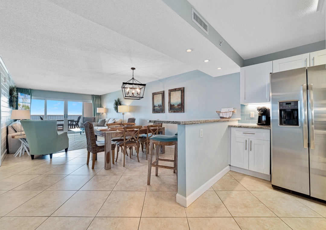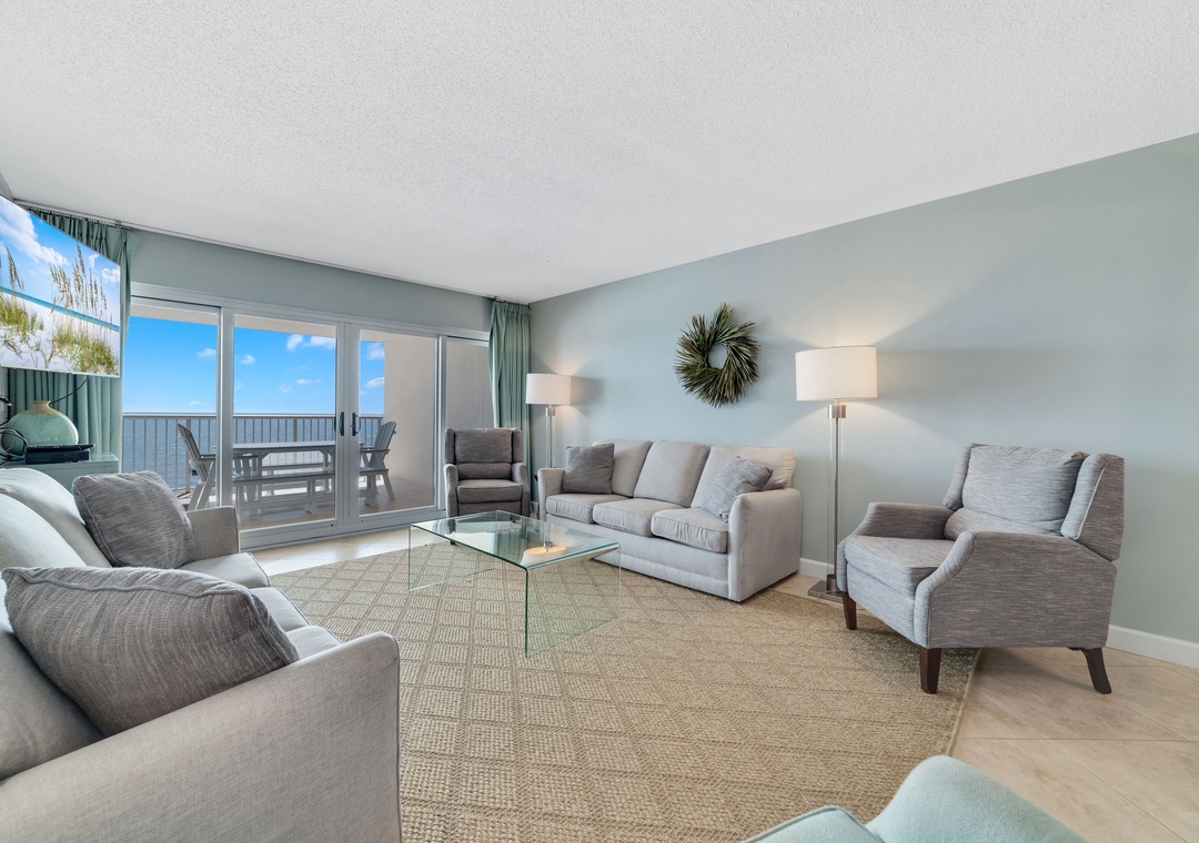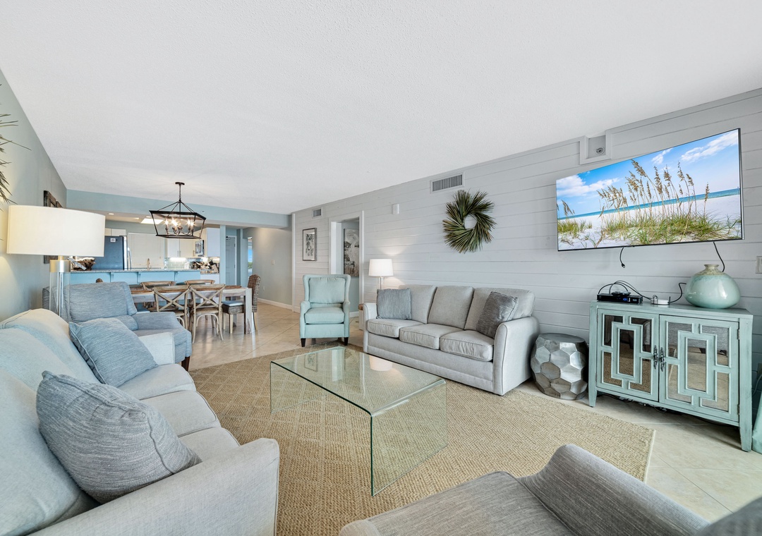 You'll enjoy luxury extras without sacrificing the comforts of home, including updated appliances and electronics, new furnishings, and lavish finishes throughout! The living room was designed with relaxation in mind, boasting plush sofas and chairs, a large wall mounted flat screen TV and beachfront balcony access!