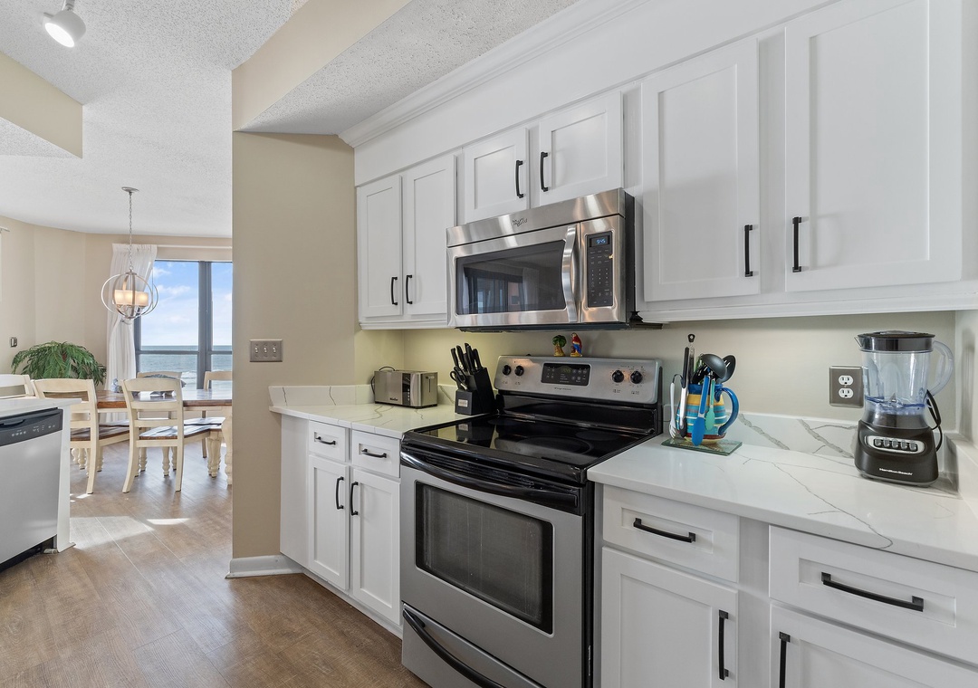 the pictures do not do this condo justice. It is absolutely beautiful and the owners have thought about any little thing that you might need for a beach trip. The view was incredible. We ate out for all of our meals, but if you wanted to cook, everything that you would need is there. We had a wonderful time and loved, loved the condo.- Reviewed On: 1/3/2017