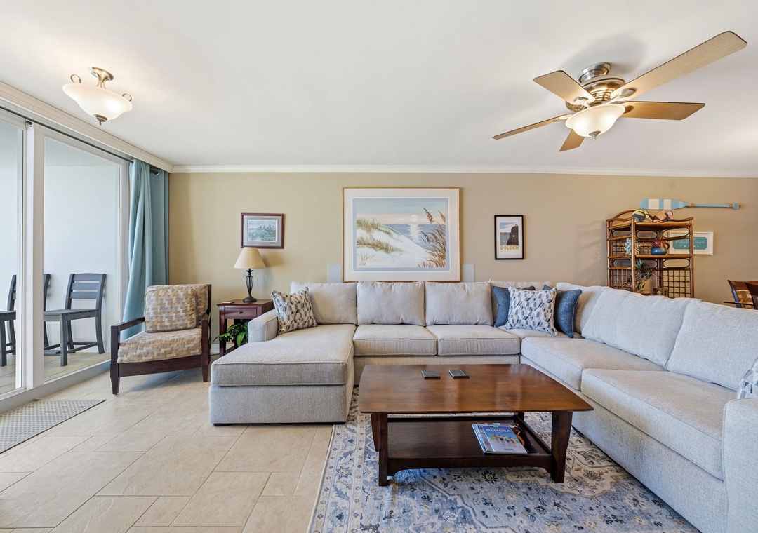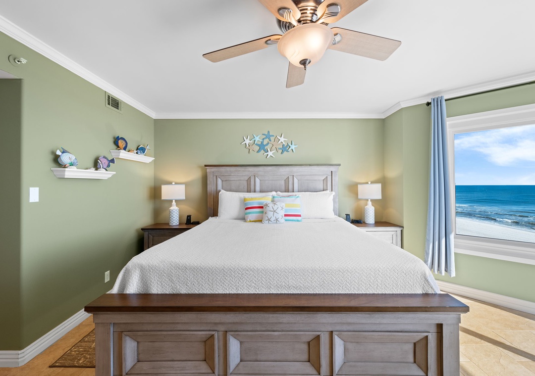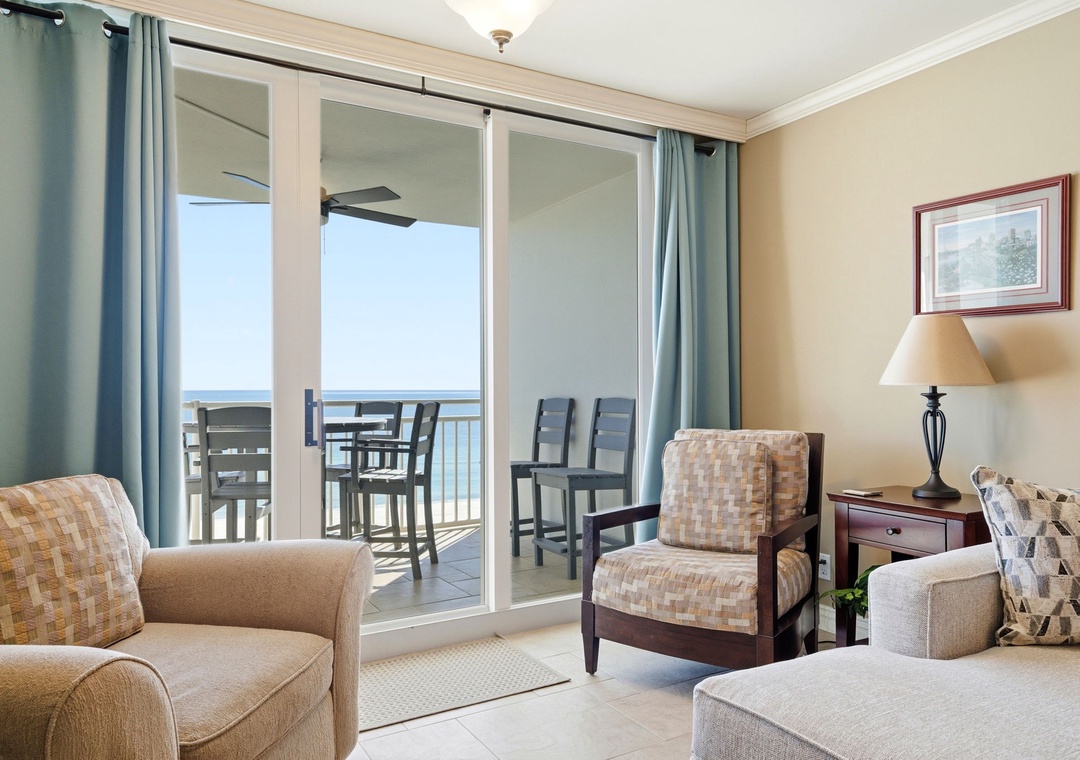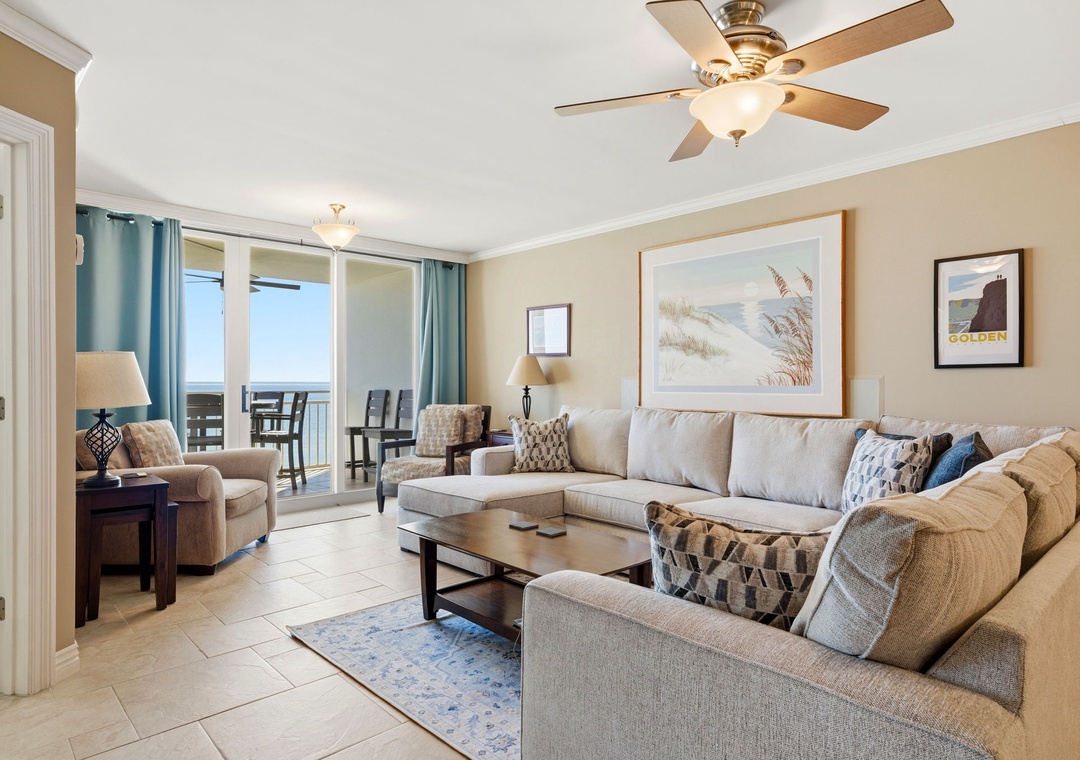SeaSpray East 624 is a spacious 3-bedroom, 2-bathroom beachfront condo offering breathtaking Gulf views and direct access to the sand and surf. The primary suite features a king bed and private access to the beachfront balcony, perfect for enjoying morning coffee with stunning ocean vistas. The second bedroom provides a cozy queen bed, while the third is ideal for families with a twin over full bunk bed and an additional twin trundle. With a queen sleeper sofa in the living room, this unit comfortably accommodates up to 10 guests, making it ideal for larger families or groups of friends.