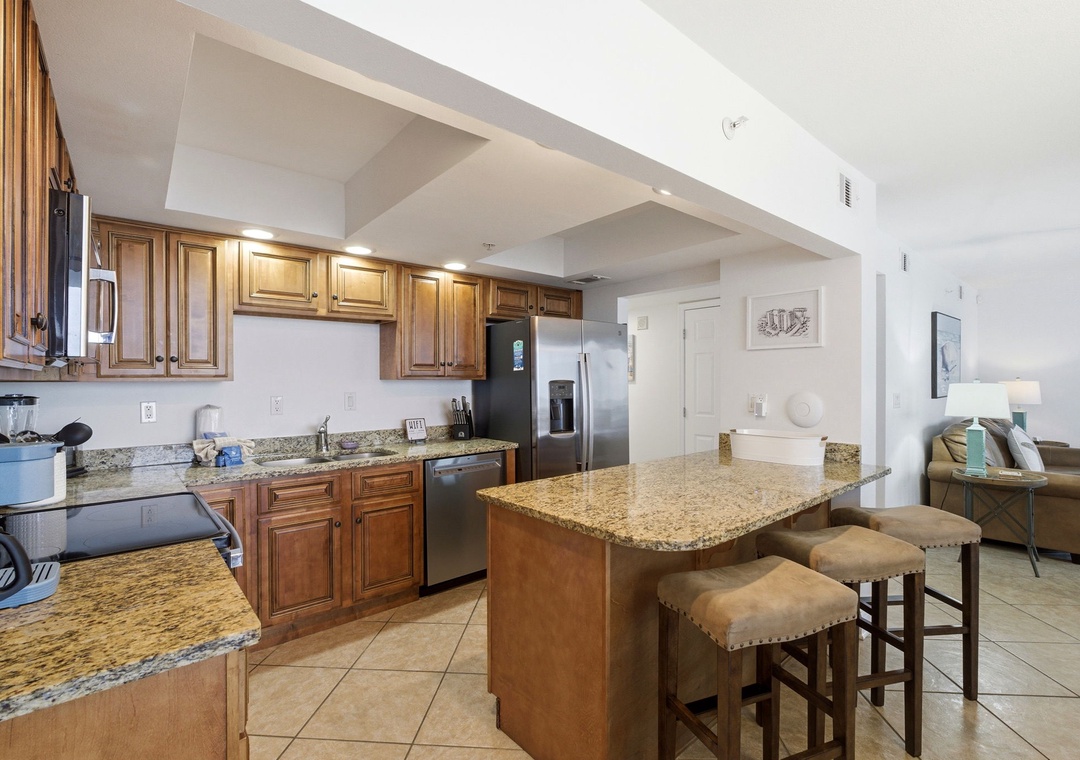 Inside, the condo boasts a gourmet kitchen fully equipped for everything from casual breakfasts to home-cooked dinners, along with luxurious linens and thoughtfully designed living spaces that make you feel right at home. Each bedroom provides a restful escape, while the open layout is ideal for unwinding after a day on the water or at the beach.