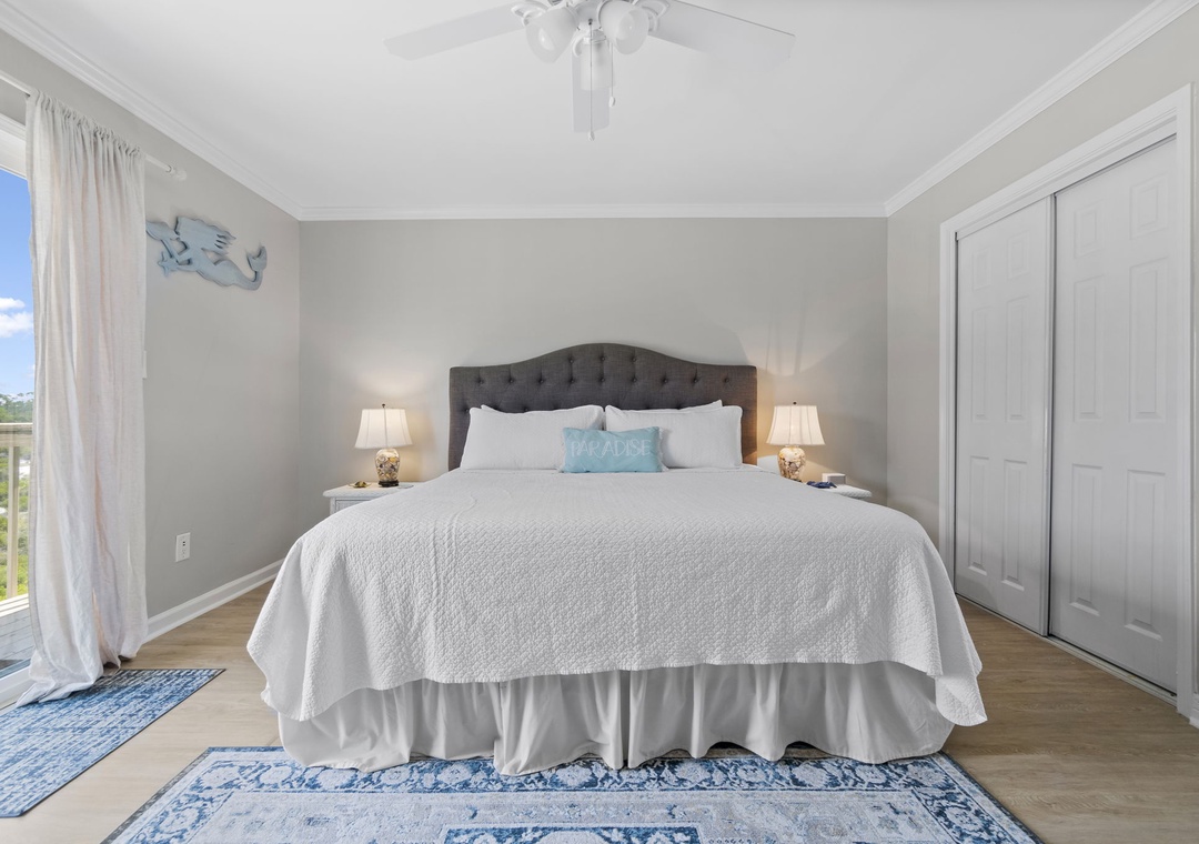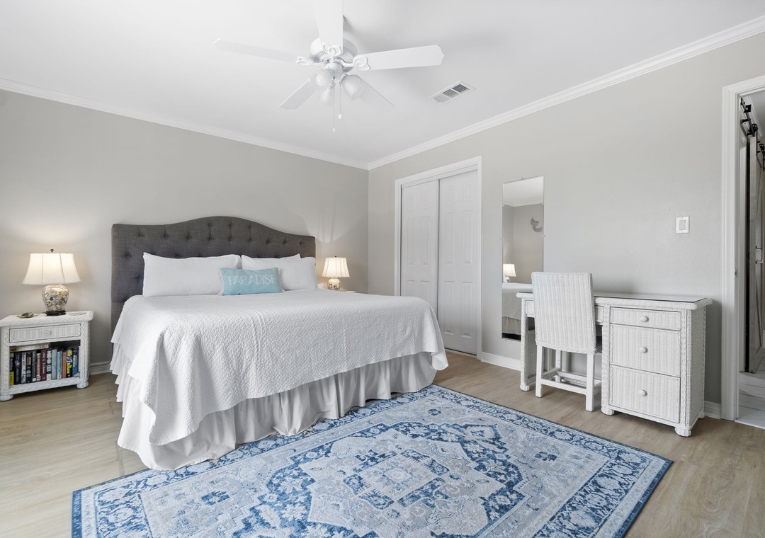 The master bedroom boasts a luxurious King-sized bed, promising you the ultimate in relaxation and a rejuvenating sleep. Wake up each morning to the gentle sounds of the ocean, preparing you for another day of sun-soaked adventures.