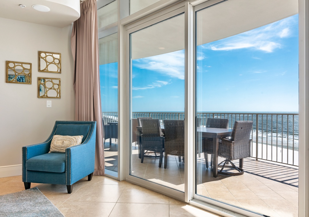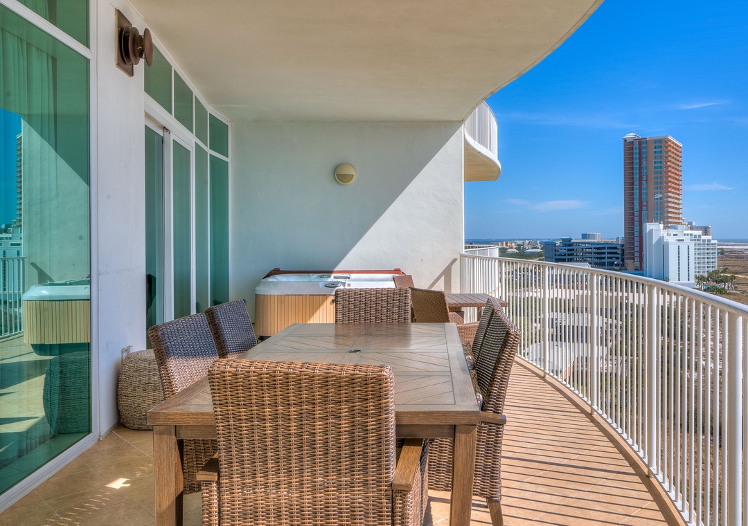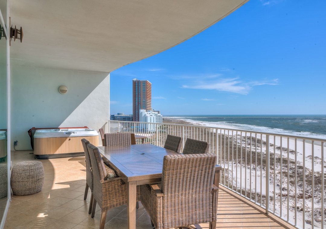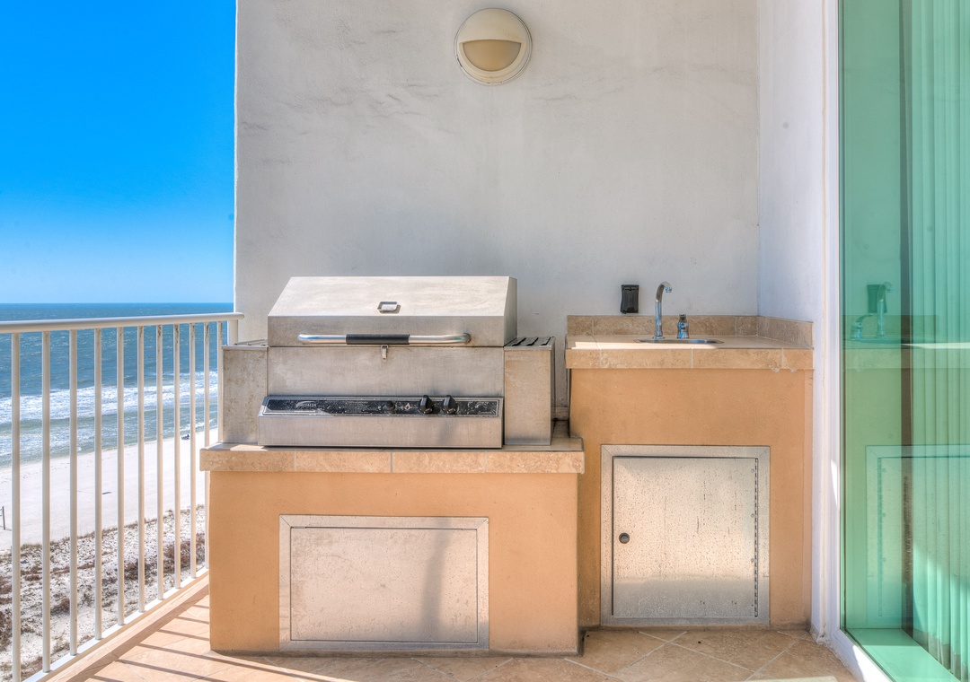In addition to indoor living space, an expansive 400 square foot balcony offers panoramic views of Orange Beach’s picturesque seashore. Saunter away quiet moonlit evenings in your private 4 person Jacuzzi tub or enjoy your favorite cut of meat from the grill with family and friends without leaving the comfort of your unit! There is an outdoor dining table where you can savor your morning coffee, enjoy your favorite cocktail or even dine al fresco while the gentle lapping of waves and the coastal breeze soothe your senses.