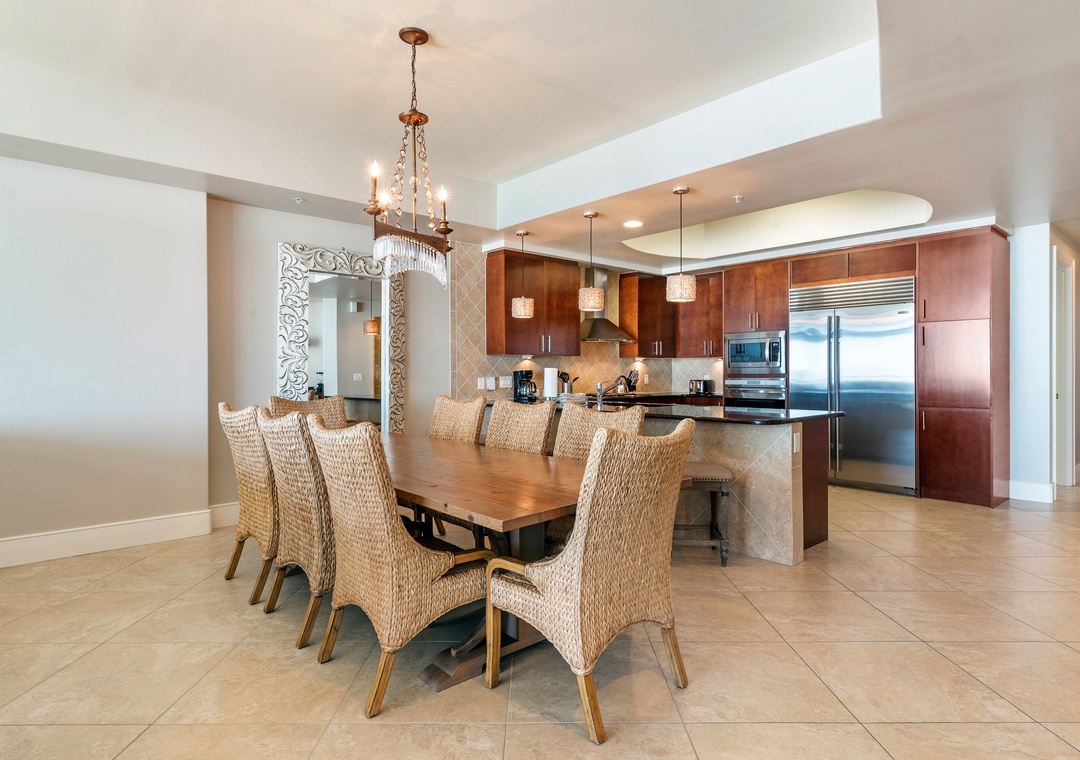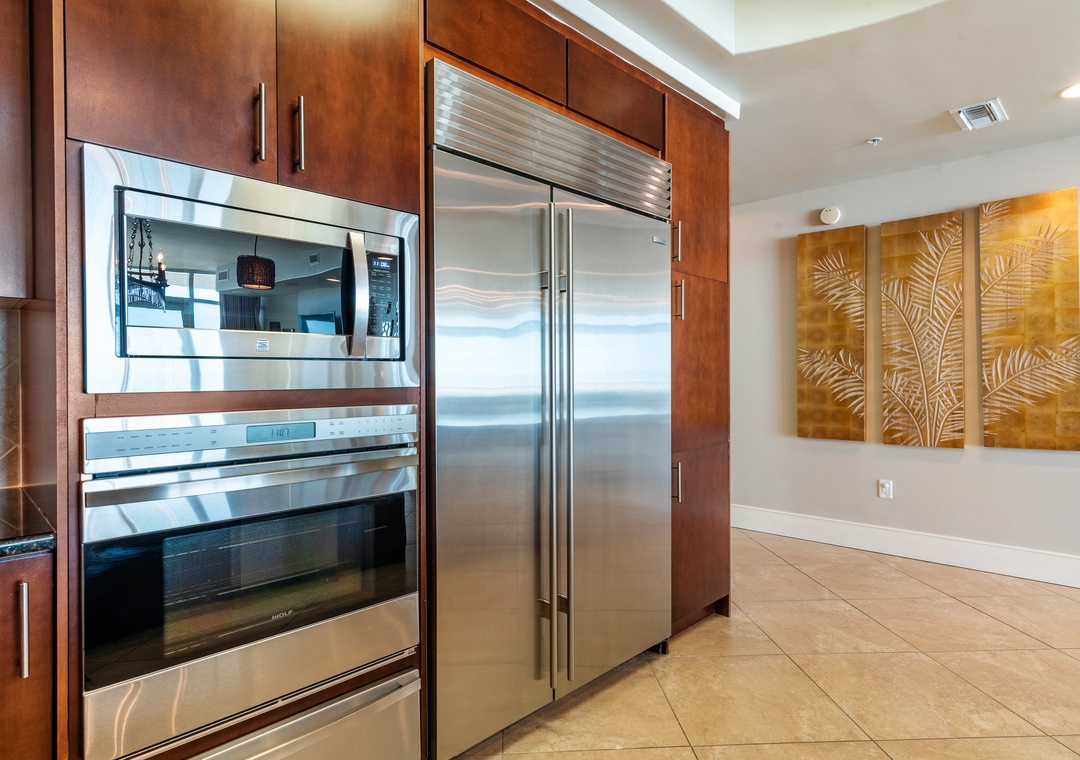 The kitchen is sure to impress even the most seasoned chef, offering granite countertops, a gas cooktop, stainless steel appliances from top brands including KitchenAid, Wolf and Sub-Zero, a breakfast bar with seating for four, and so much more! The dining area affords seating for 8 and a wet bar with separate ice maker and wine chiller-perfect for mixing your favorite cocktail and entertaining guests!