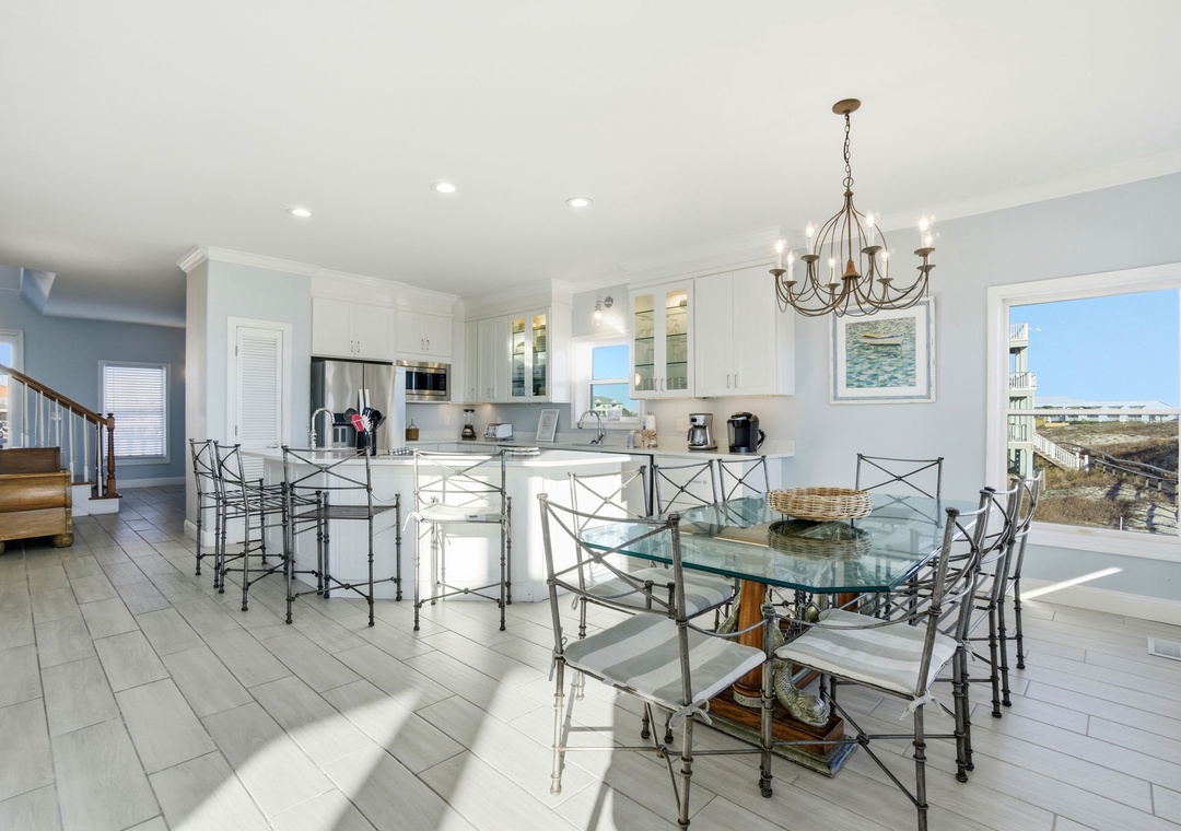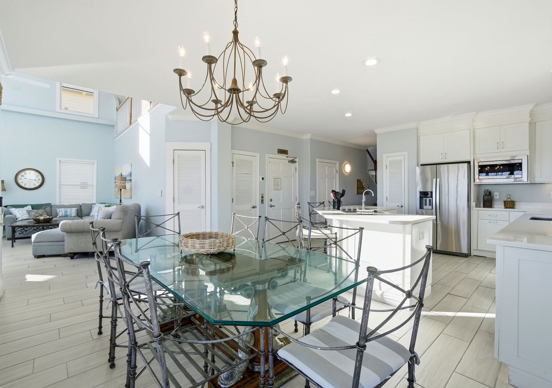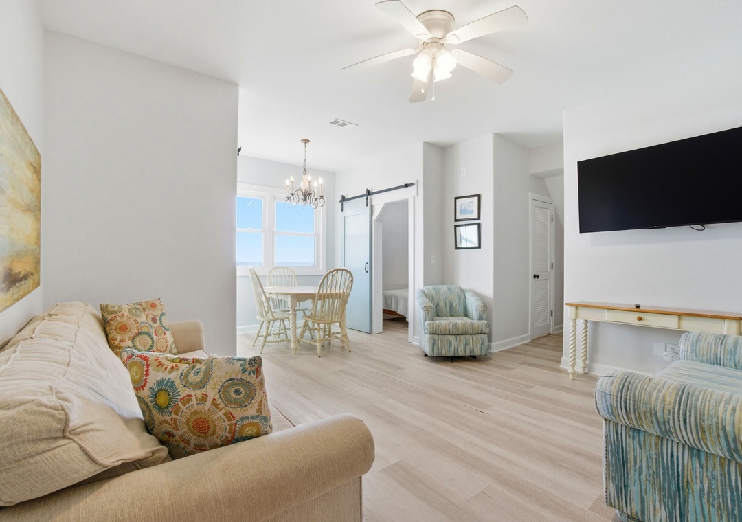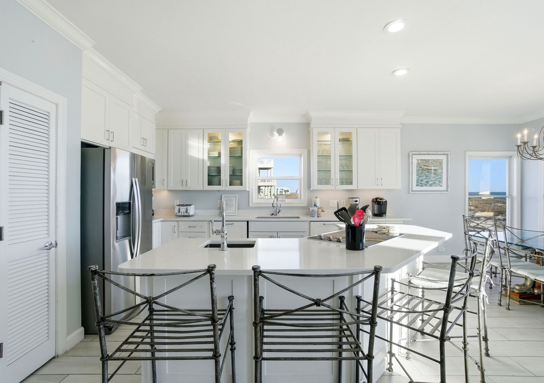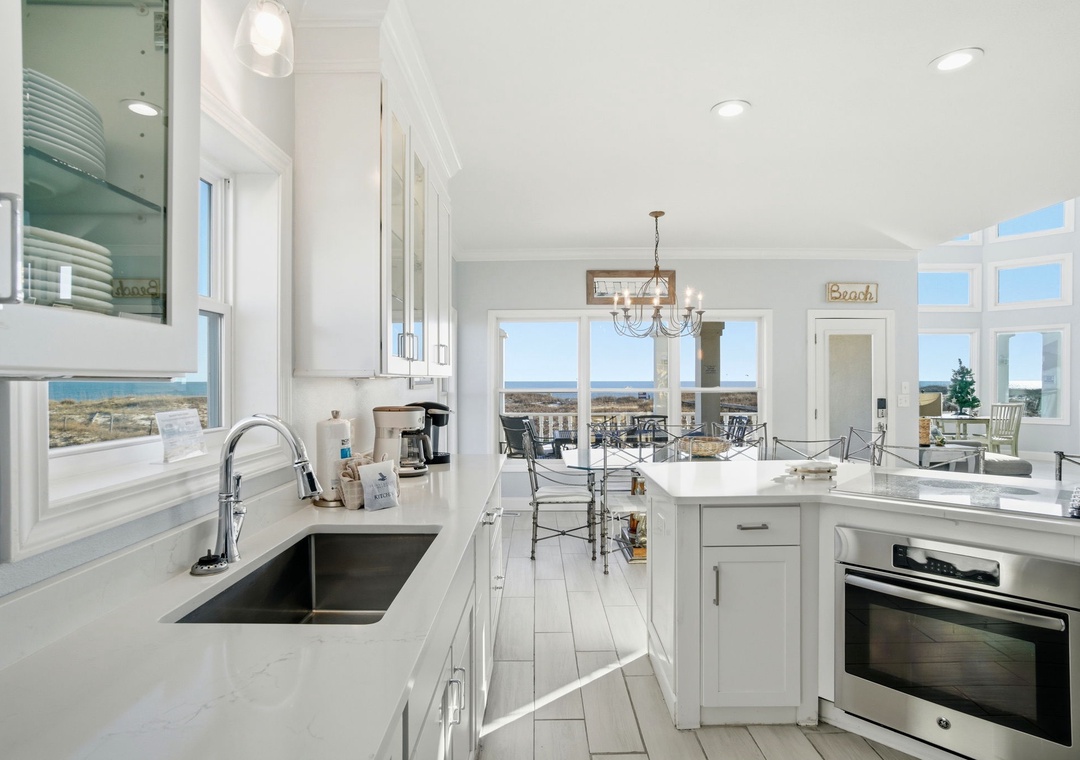 Filled with natural light and soft coastal tones, the home offers a warm and welcoming atmosphere across all three floors. Thoughtful updates, quality furnishings, and generous living spaces make it easy for everyone to settle in and feel at home. The third floor adds another layer of comfort with its own full kitchen, dining area, and living room—perfect for giving families or different generations space to spread out while still staying connected.