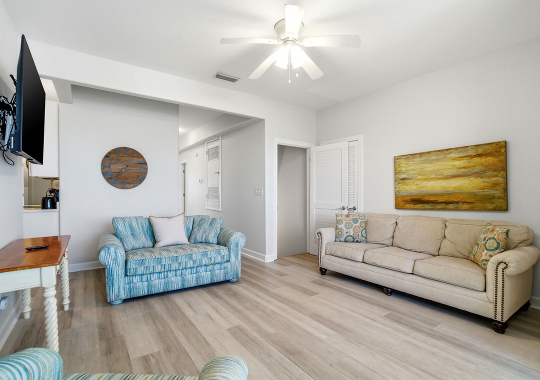 Step out onto the balcony or take a few steps toward the sand, and the peaceful stretch of Gulf shoreline immediately sets the tone for your stay. Early mornings with coffee, kids building sandcastles by midday, and evenings spent listening to the waves create the kind of easy, memorable moments families return for year after year. For added relaxation, The Dunes community pool and hot tub provide a refreshing break from the beach.