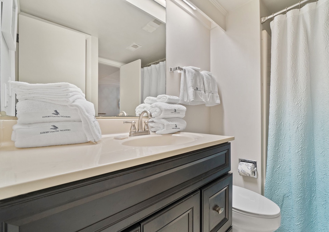 Thank you, Bob! Next time you stay, please call/text our maintenance team if there are any cleanliness issues like the bathrooms. We will send someone out to correct it ASAP! We hope you stay again soon! -The Luxury Coastal Vacations TeamLuxury Coastal Vacations staff