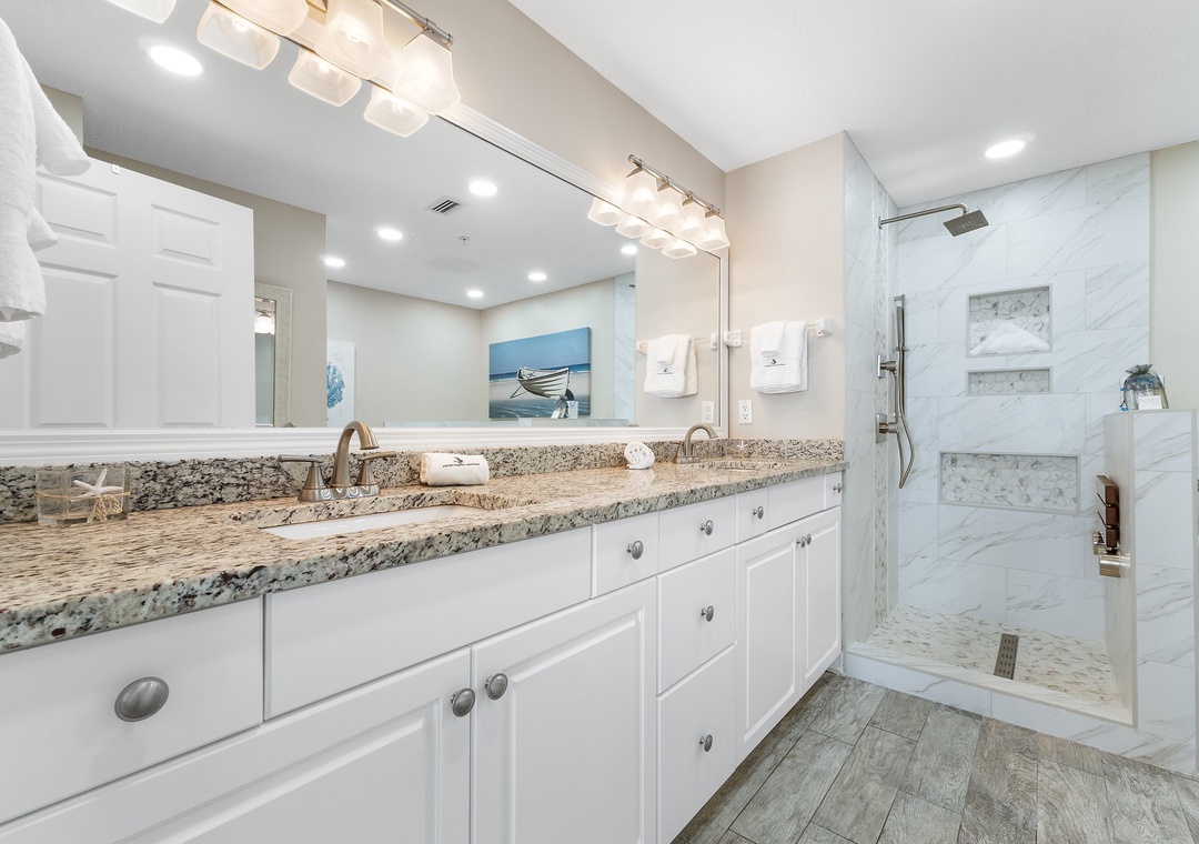 What a wonderful and spacious condo. Everyone had their own space and bathroom. The floor plan is PERFECT for families. It was wonderful having 2 Master Suites facing the Ocean. The Patio/Balcony was our favorite place to be. We cooked breakfast each morning and dinner each night and the kitchen was more than amply stocked. We ordered pizza from the place across the street and it was Really Good! This is an End Unit so there was no outside noise to speak of. We have already decided that this will be our return condo of choice for Perdio. This is a 5 Star Condo!!!- Reviewed On: 5/6/2019