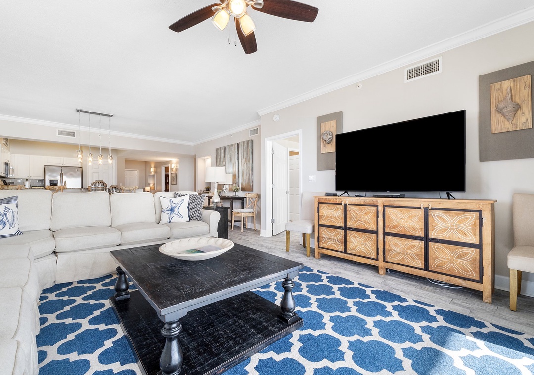 This property was awesome. We really enjoyed our stay. The condo is comfortable and beautiful. The kitchen was well stocked with dishes, pans etc needed to cook for the 9 people we had staying in the condo. The view from the deck was amazing. The beach is clean with white sand. I love how the beach was not overly busy even during spring break. I would highly recommend this condo. thank you for a great vacation.- Reviewed On: 4/6/2022