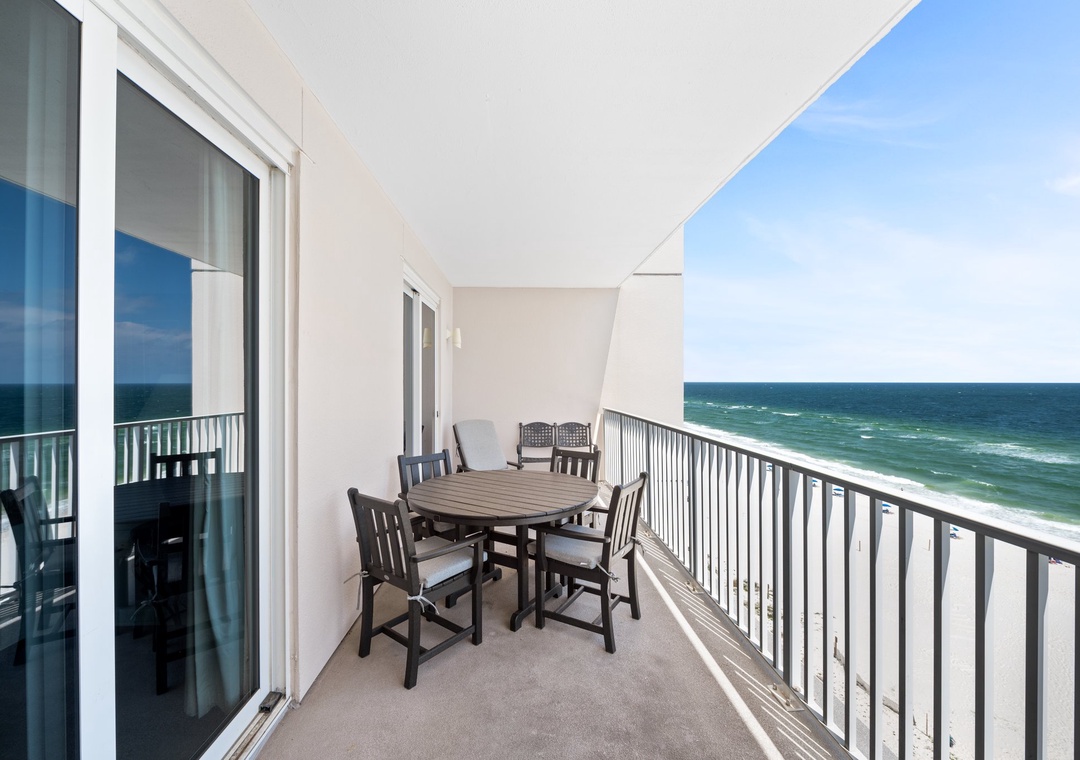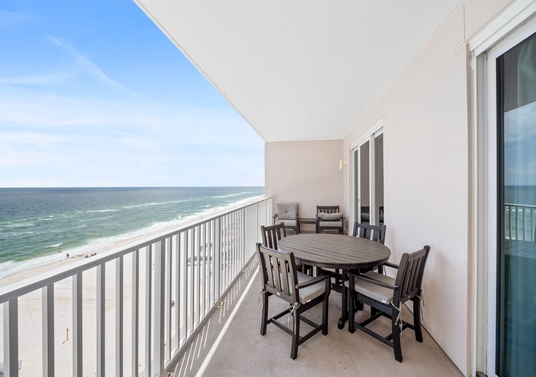 My mom had stayed in this very condo in May and had wonderful things to say. She brought us back this September. Upon arriving we could tell the condo was going to feel like a home-away-from-home. It was the perfect amount of space for 5 adults and a toddler. A place for everyone. We had all we could possibly need for the week including kitchen utensils, washer and dryer and plenty of towels. The best part is the location!!!!! Just walk out the back and you are on the beach. Amazing. Every morning we woke up to dolphins swimming - which being on the 8th floor - made for a great view. I think what was most impressive about our experience was the attentiveness and availability of the owner. Anytime we needed anything or had a question, they immediately responded with service and care that is unmatched in any industry. This is something, as a business owner myself, that is so important and what retains loyal customers. This is why we will be back and request this unit specifically. [Places to go while in town: Flora-Bama Yacht Club, Lilllians Pizza Buffet across the street, Shipps in Orange Beach, For kids: Naval Air Museum, Zoo]- Reviewed On: 9/20/2013