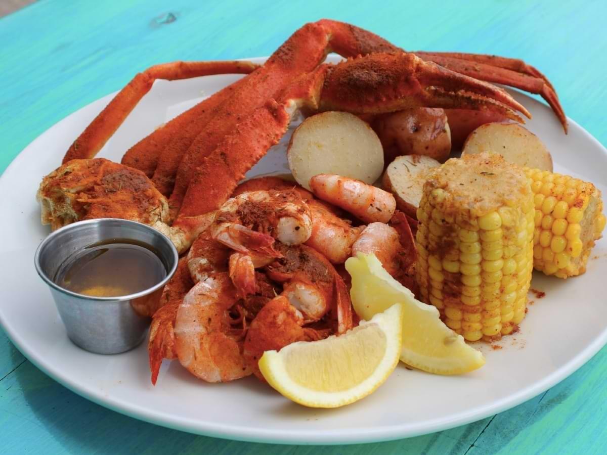 - Seafood baskets, crab claws, and tacos by the Gulf