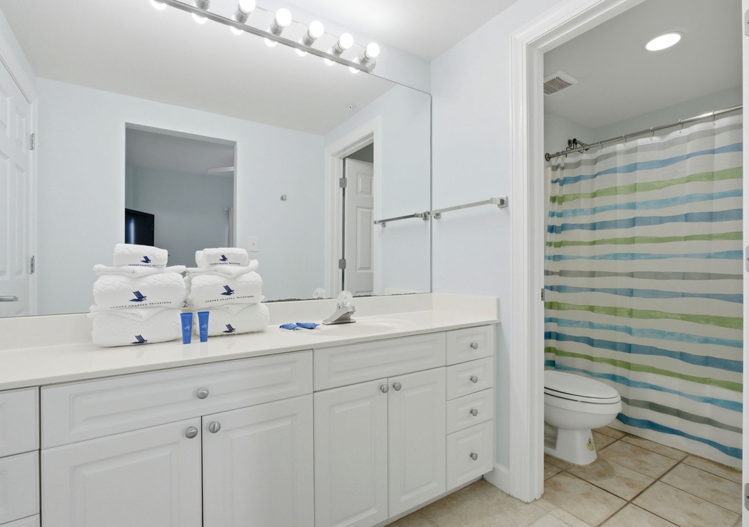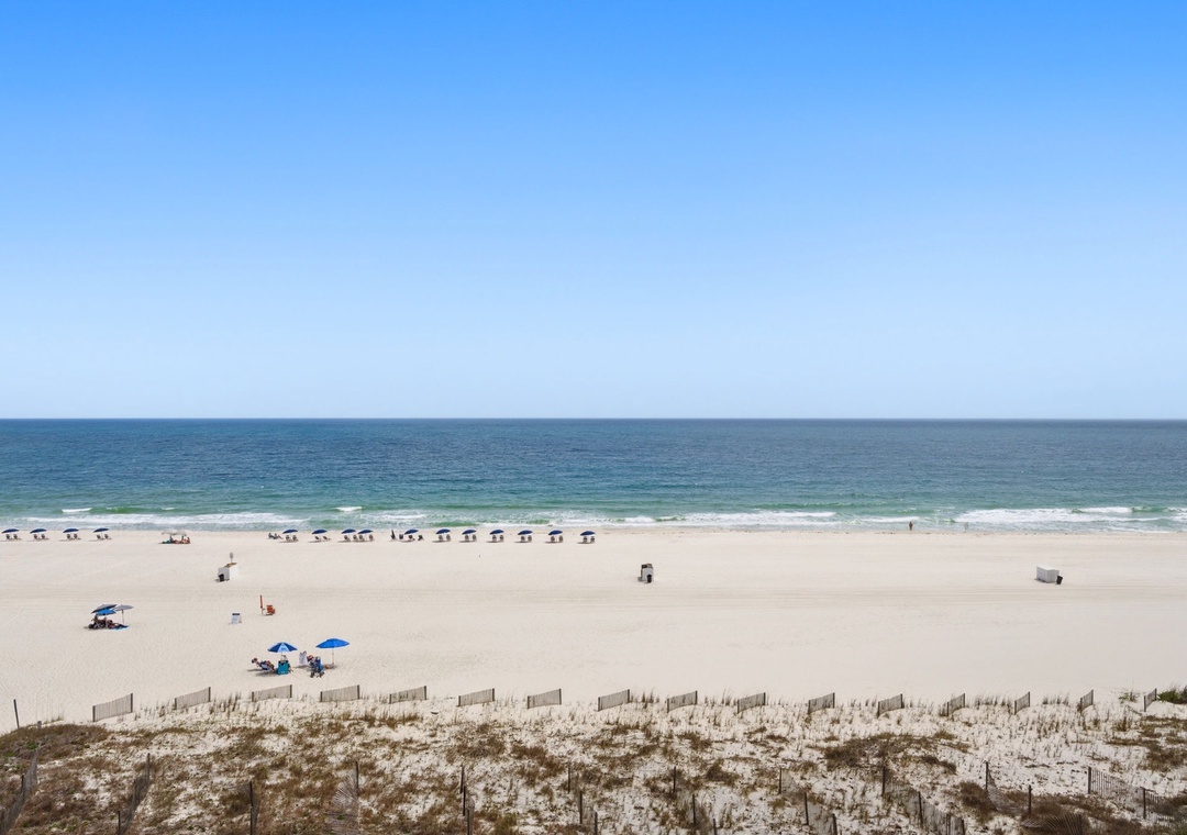 Welcome to Admiral's Quarters 506—a stunning fifth-floor beachfront condo set directly on the sugar-white sands of the Gulf of Mexico in Orange Beach, Alabama! This beautifully appointed 2-bedroom, 2.5-bath retreat sleeps up to eight guests and offers breathtaking, unobstructed Gulf views from a private oversized balcony—the perfect backdrop for morning coffee, afternoon relaxation, or unforgettable sunset moments. Inside, the bright open-concept living and dining area features floor-to-ceiling windows, plush seating, a large flat-screen TV, and a sleeper sofa, while the fully equipped kitchen boasts granite countertops and stainless steel appliances—ideal for everything from quick snacks to full group meals. The primary suite offers a king bed, direct balcony access, and a spa-like ensuite with dual vanities, a walk-in shower, and a deep soaking tub. The guest bedroom features two full beds with its own private bathroom, and all bedrooms are outfitted with brand-new mattresses for a restful night's sleep.