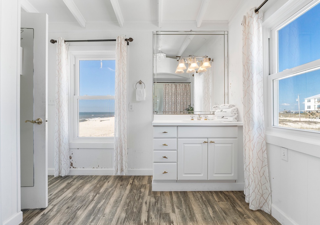 Our stay was great! House was as described online. The mattress in our room was amazing!! There is a few minor details that could be touched up like chipped paint but it does kind of give it character. It’s right on the beach which was excellent for our teenagers and older adults. Teens could hop in for a quick snack and the adults could come down to the water for just a bit & not struggle in the sand walking because it was so close! The 2 main bedrooms view and direct entry to the porch was perfect for early morning sunrise views! We loved how big and spacious the porches were. The covered one was great when it rained and the other was great for the sunbathers! Lots of books & puzzles available on the gorgeous cabinet in living room. There is a charcoal grill there, we used it several times. There is not a lot of restaurant options close but we were ok with that because we have husbands who like to cook! My only real suggestion is the individual chairs in the living room could be recovered or replaced as they looked dirty. We just used some extra sheets to cover them so we were fine. The weather wasn’t great and double red flags caused it to be not the best vacation but we made the best of it! Oh, there isn’t really any games so I suggest bringing along a couple of card games if you have teens! I would definitely stay again and hope to someday!!- Reviewed On: 10/11/2025